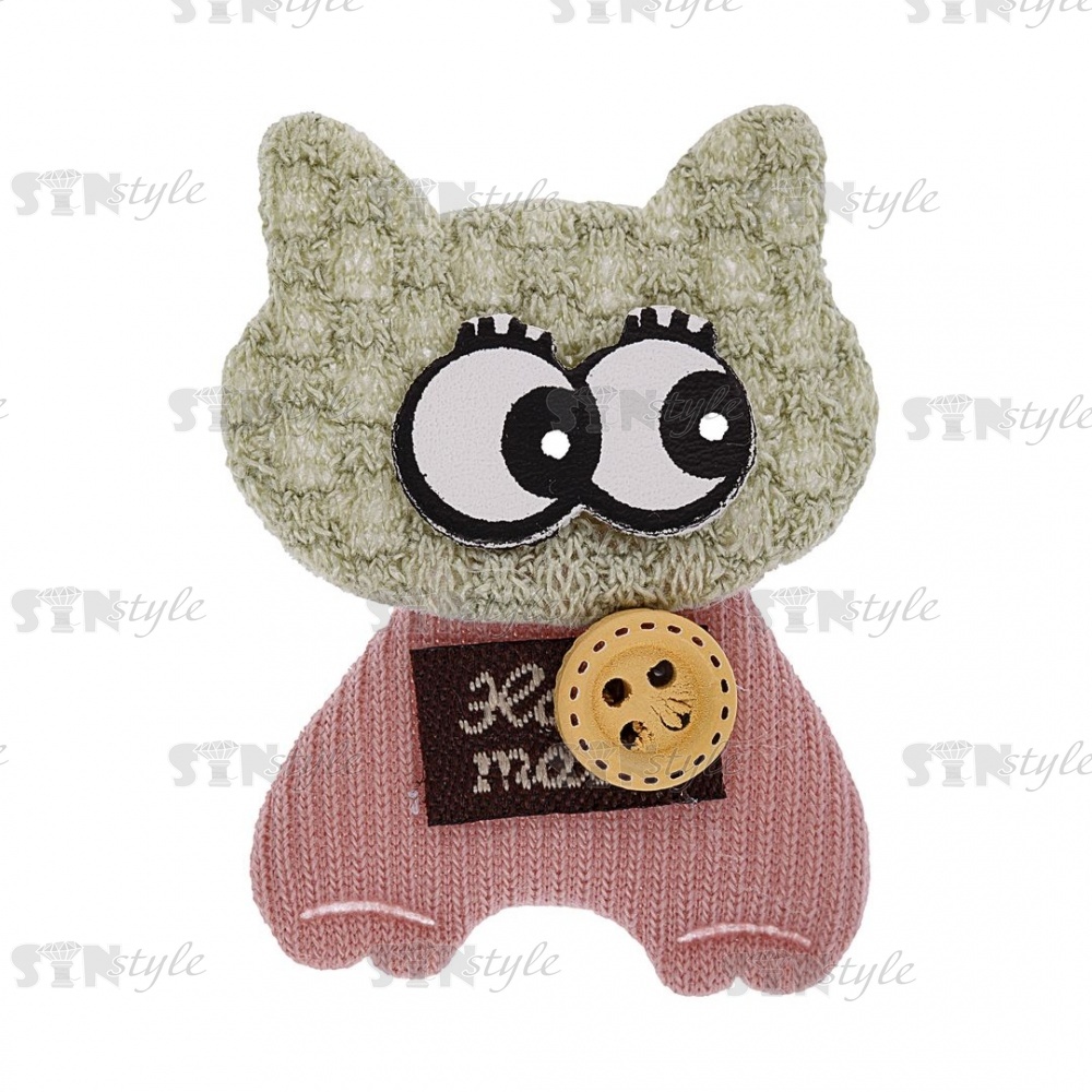 Аппликация 3D "Котик", цвет мята+грязно-розовый, размер 50х35 мм