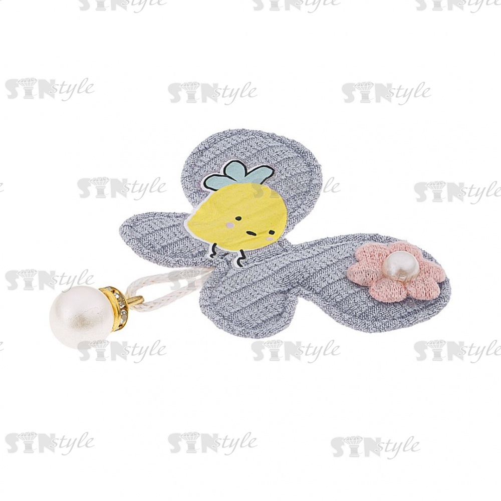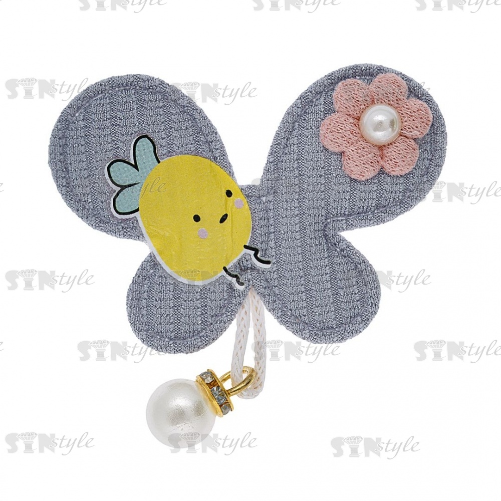 Аппликация 3D "Бабочка" с подвеской, цвет серый+грязно-розовый, размер 55х60 мм