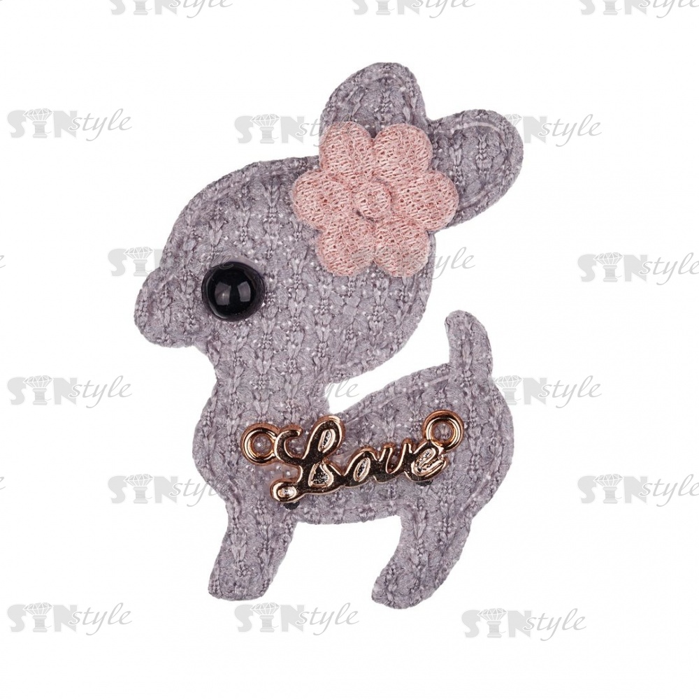 Аппликация 3D "Оленёнок", цвет серый, размер 35х50 мм