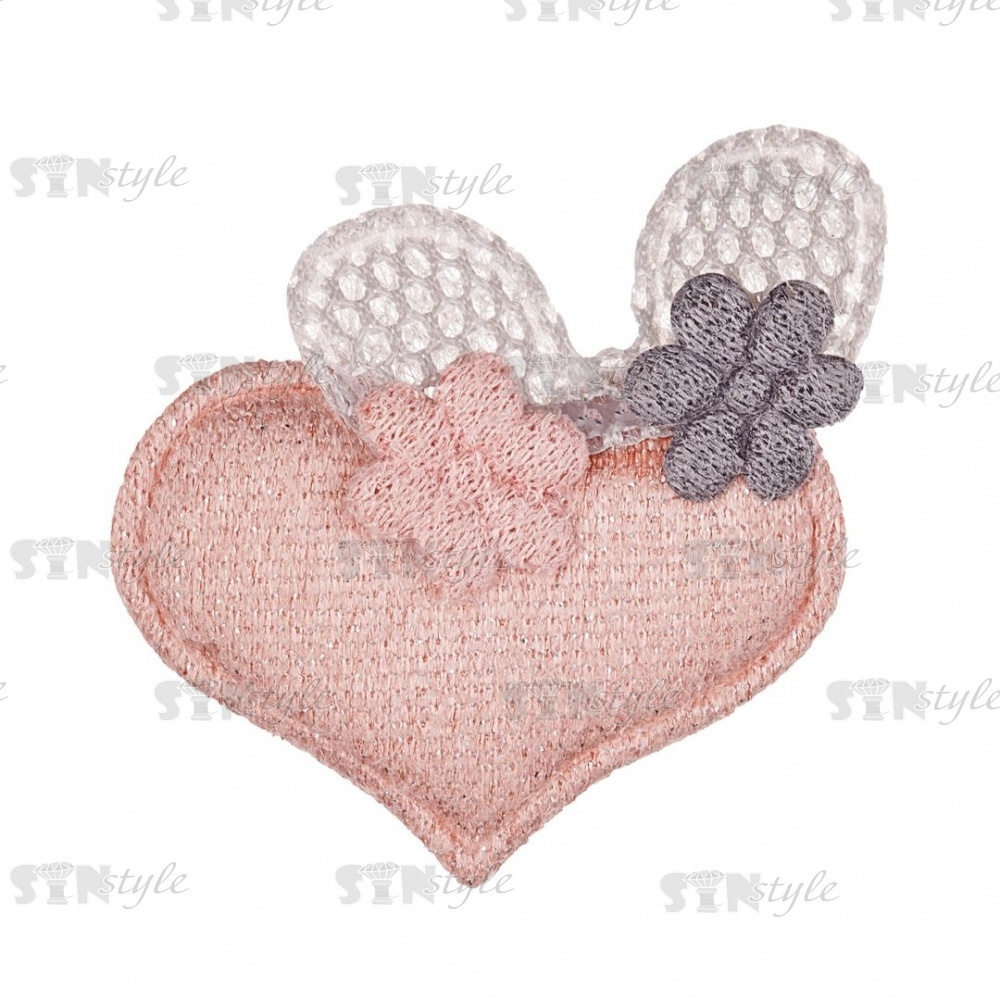 Аппликация 3D "Сердечко", размер 40х35 мм, цвет грязно-розовый