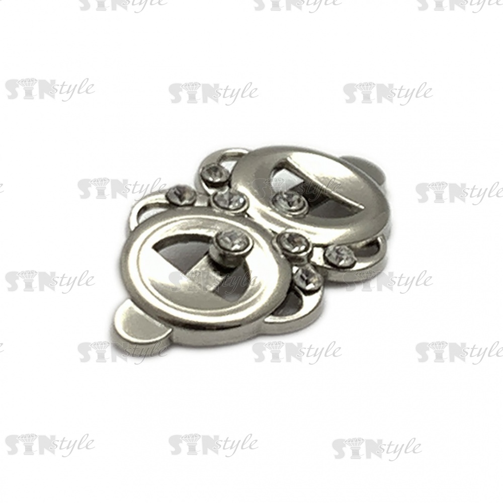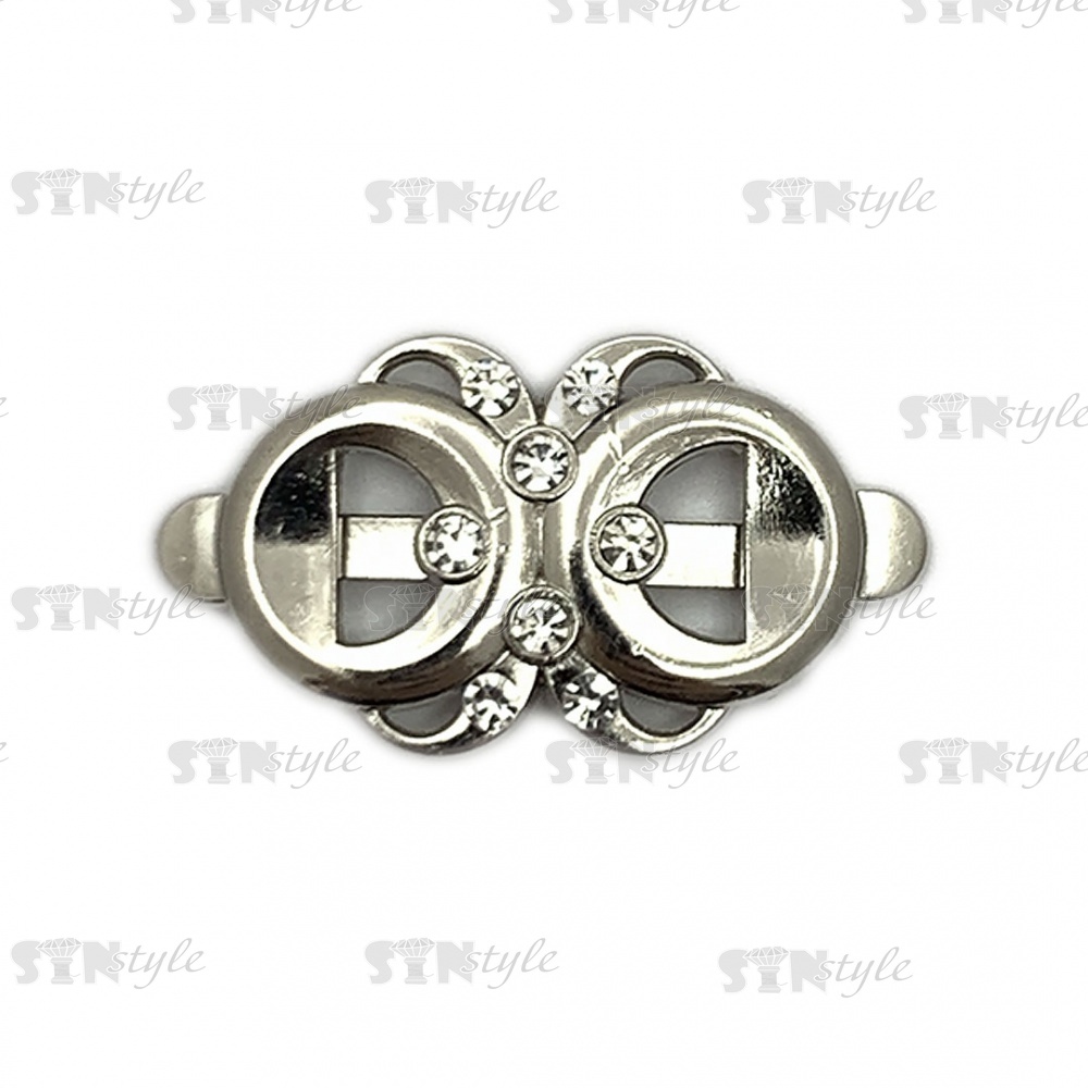 Брошь металлическая, крепление усики, размер 30 мм х 17 мм, цвет серебряный+белые стразы