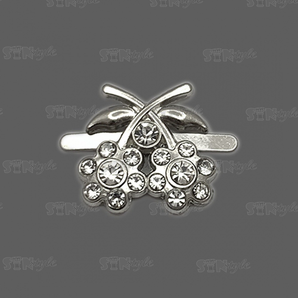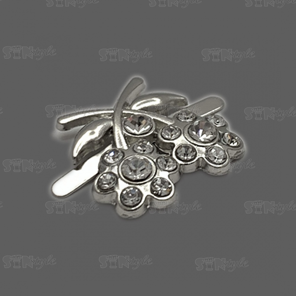 Брошь металлическая, тип крепления "усики", размер 20 мм х 20 мм, цвет серебряный+белые стразы