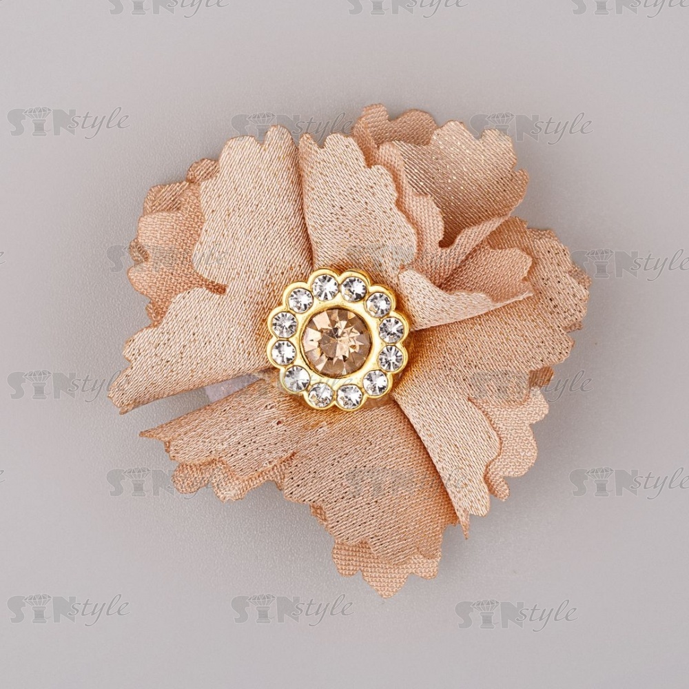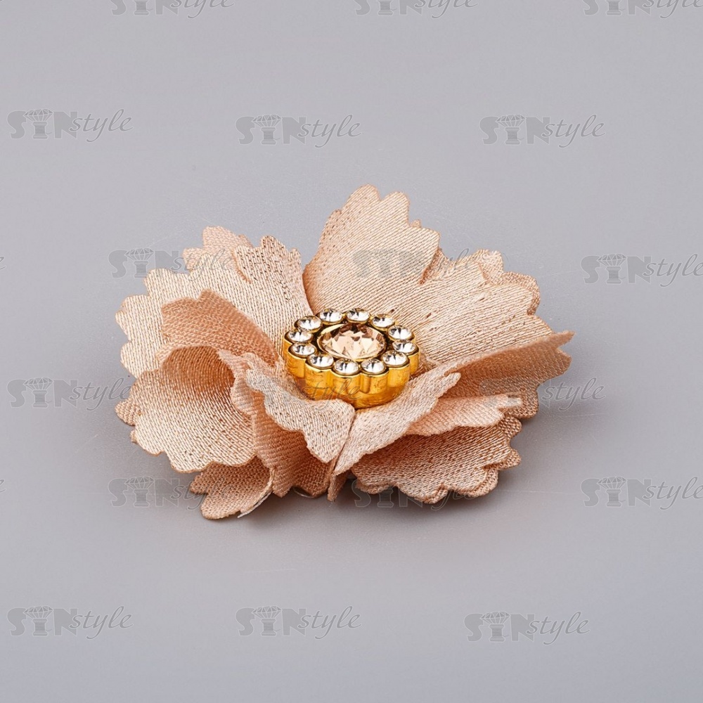 Цветочки декоративные со стразами, цвет бежевый, диаметр 35 мм,