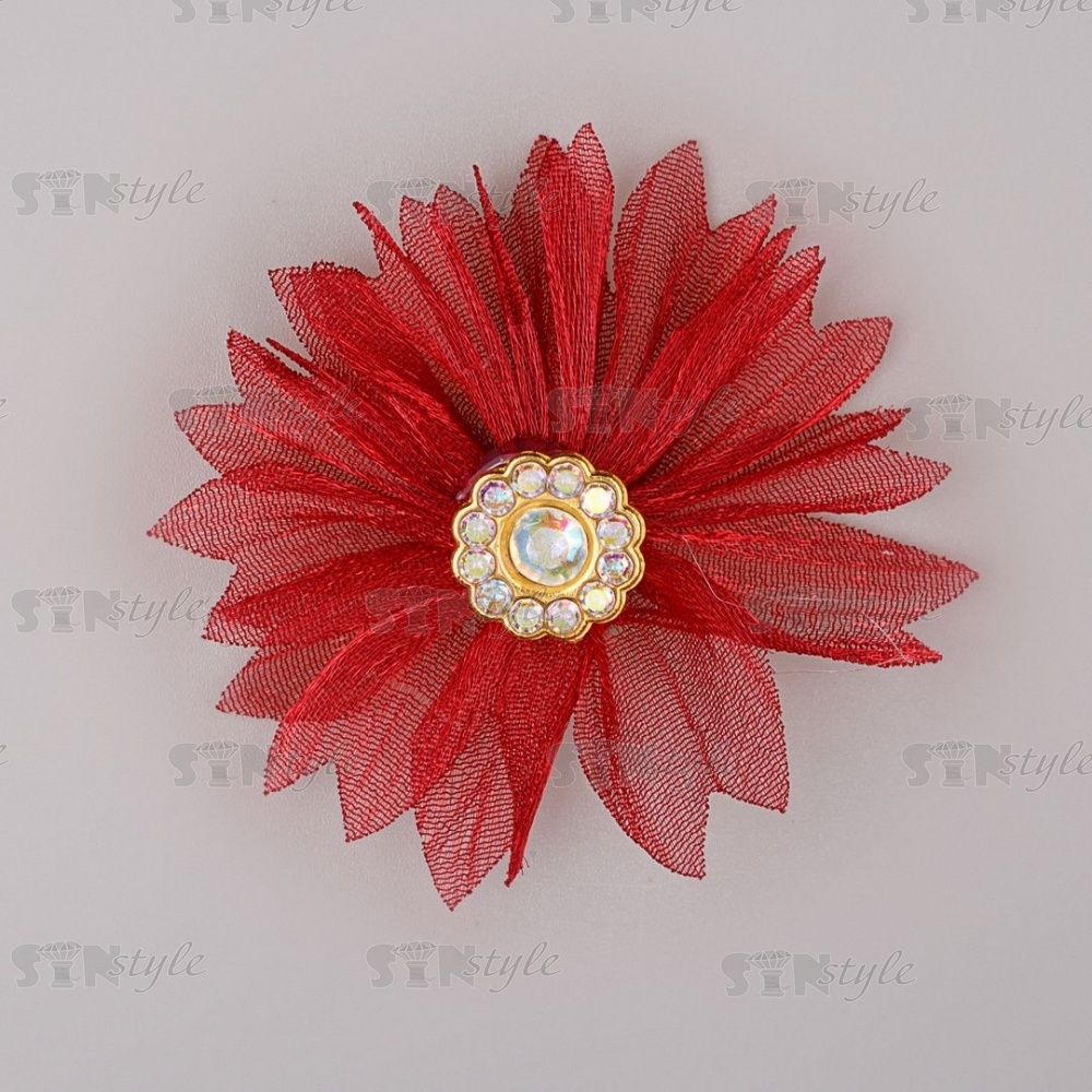 Цветочки декоративные из капрона со стразами, цвет бордо, диаметр 45 мм,