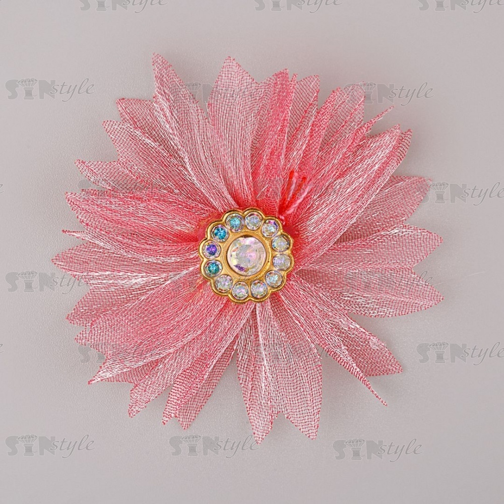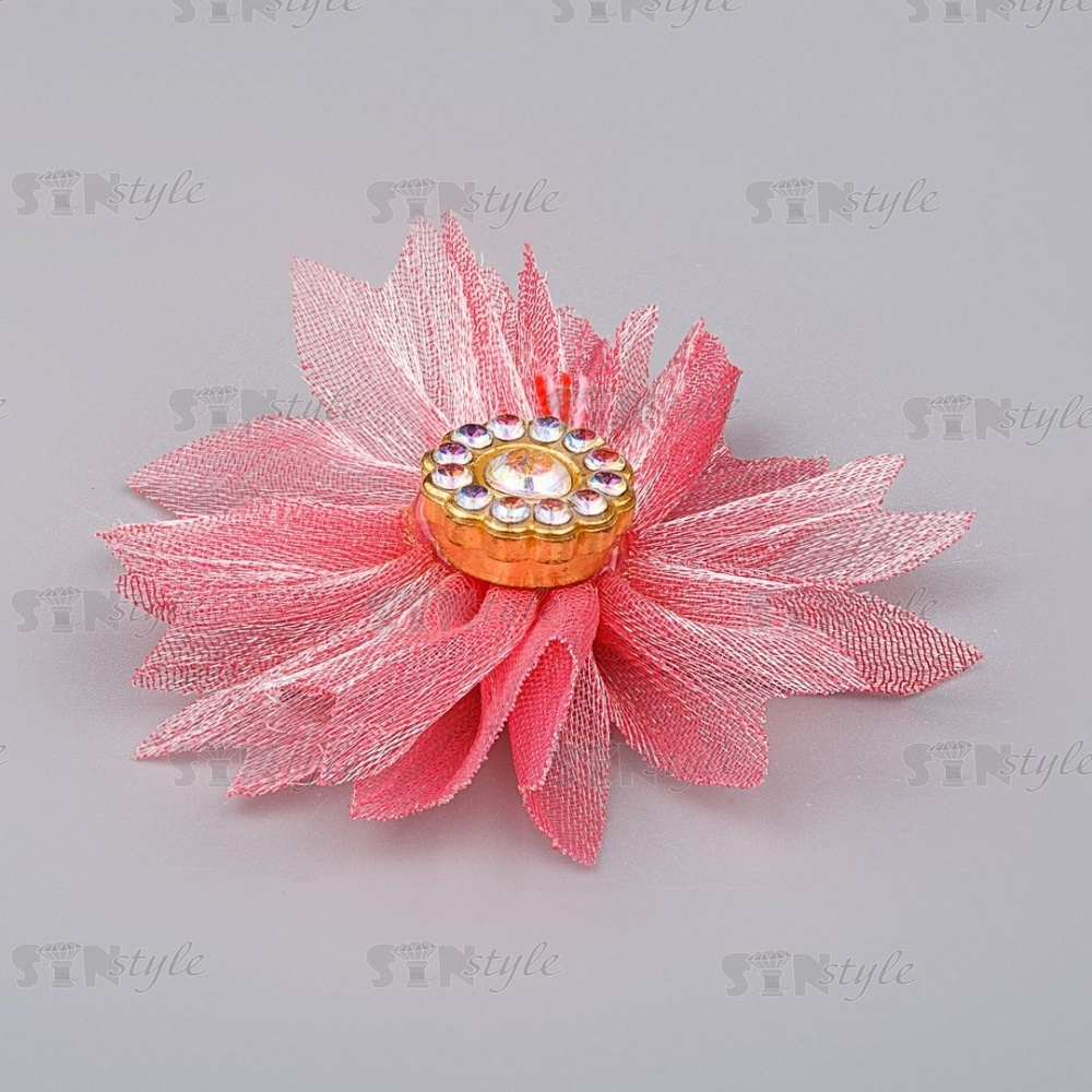 Цветочки декоративные из капрона со стразами, цвет фуксия, диаметр 45 мм,