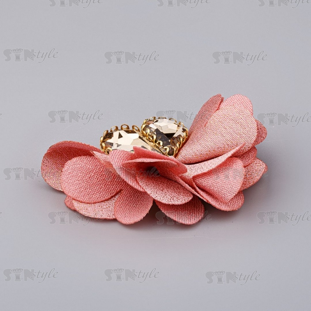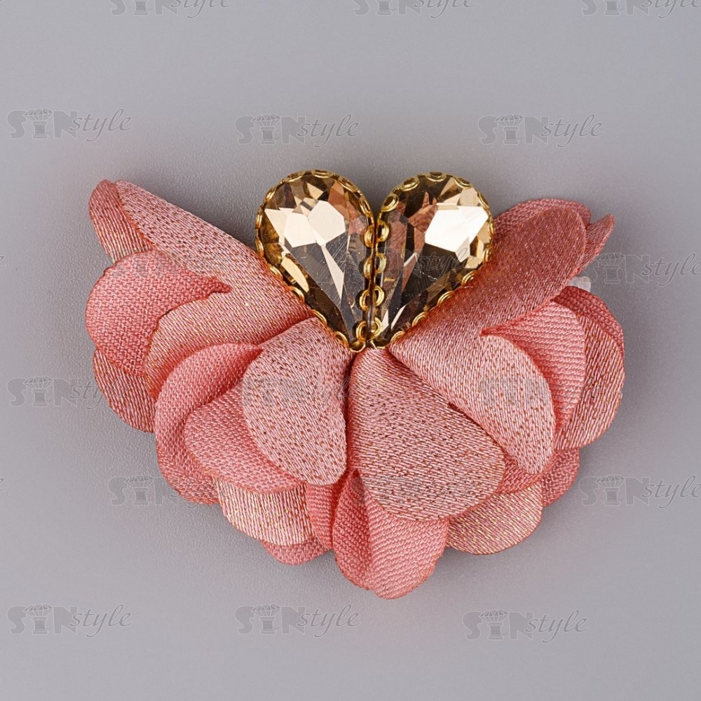 Цветочки декоративные со стразами, цвет грязно-розовый, размер 40х25 мм
