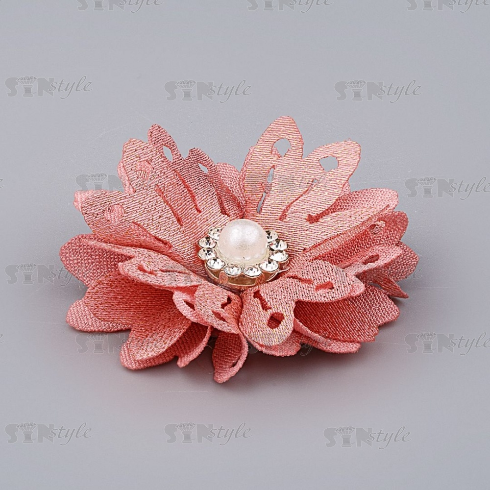 Цветочки декоративные со стразами и бусиной, цвет грязно-розовый, диаметр 40 мм.