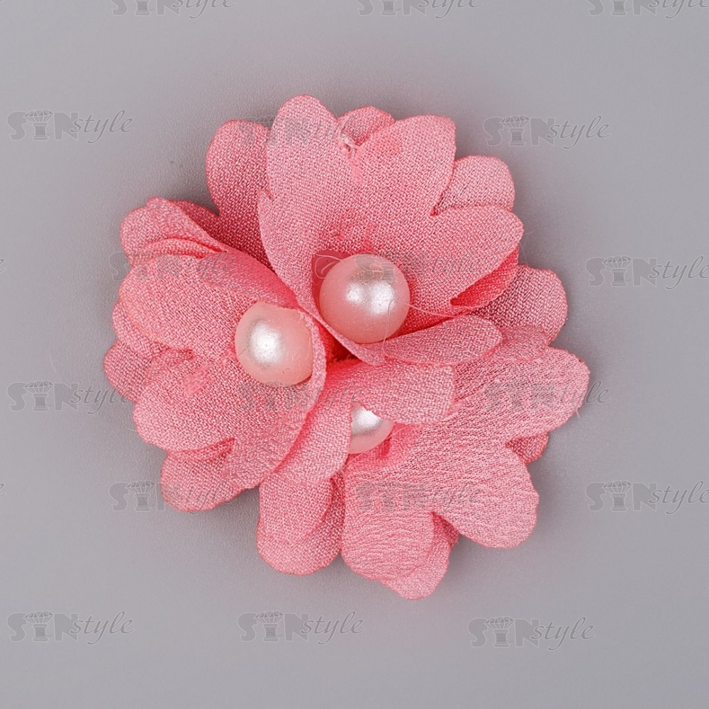 Цветочки декоративные с бусинами, цвет грязно-розовый, диаметр 40 мм,