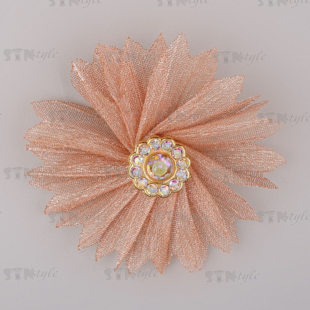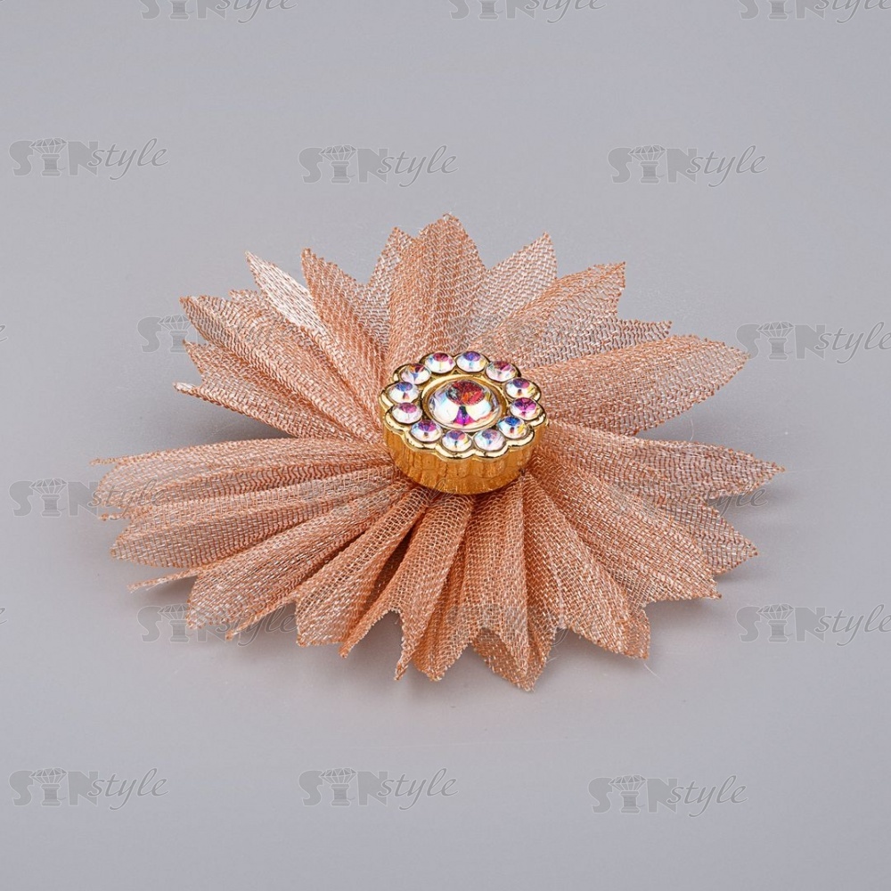 Цветочки декоративные из капрона со стразами, цвет капучино, диаметр 45 мм,