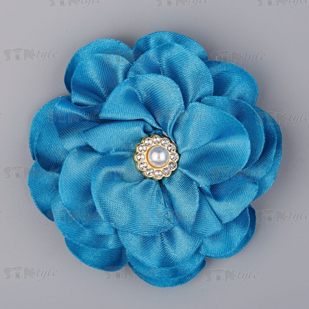 Цветочки декоративные со стразами и бусиной, цвет голубой, диаметр 65 мм