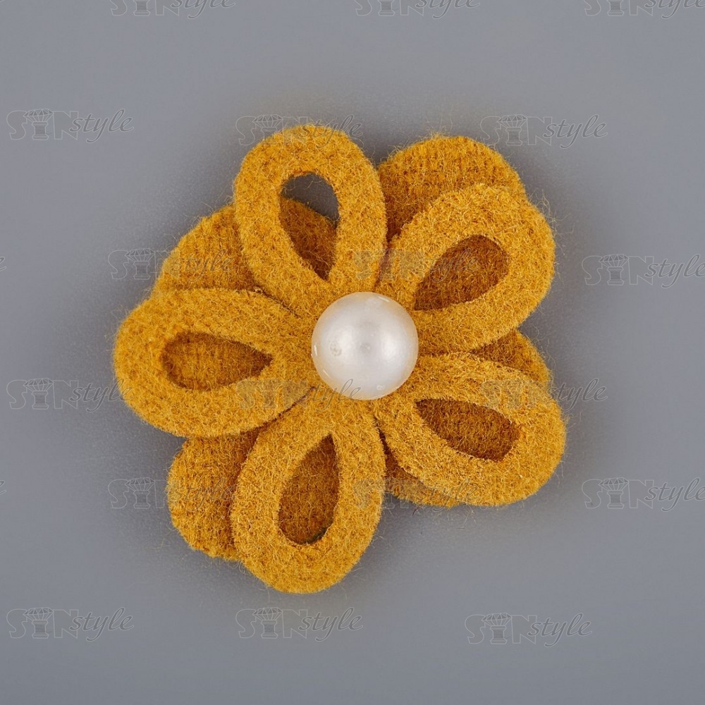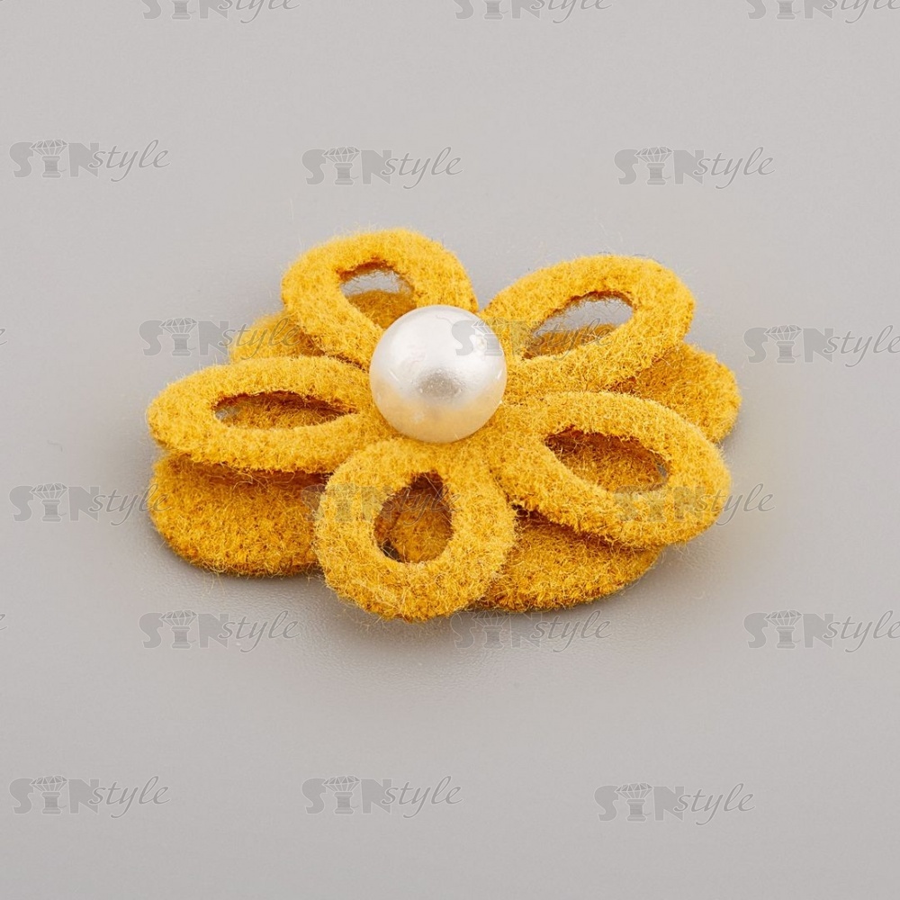 Оригинальный двухслойный цветок из фетра с полубусиной под жемчуг. Декоративные цветы имеют широкий диапазон применения: как отделочный элемент для платья, блузки, театрального костюма, шапочки, косынки берета, повязки, ободка для волос, резинок, заколок, а так же обуви из текстиля. Также цветок может быть использован в украшении букетов, подарочной упаковки, праздничных композиций и поможет решить любую задачу декорирования.
