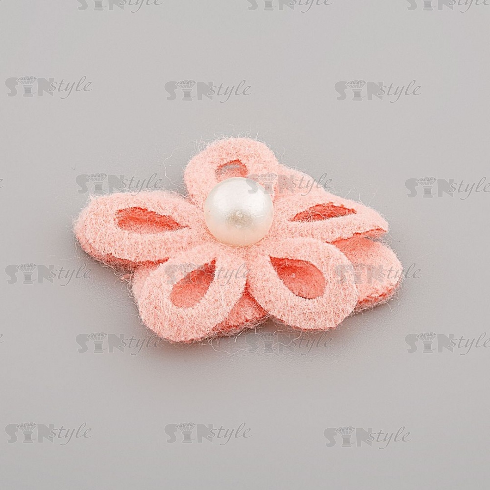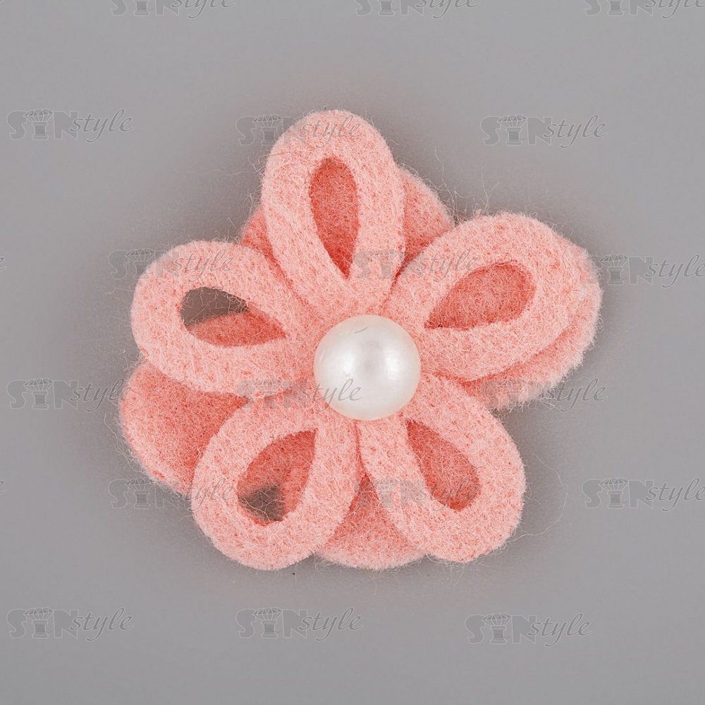 Оригинальный двухслойный цветок из фетра с полубусиной под жемчуг. Декоративные цветы имеют широкий диапазон применения: как отделочный элемент для платья, блузки, театрального костюма, шапочки, косынки берета, повязки, ободка для волос, резинок, заколок, а так же обуви из текстиля. Также цветок может быть использован в украшении букетов, подарочной упаковки, праздничных композиций и поможет решить любую задачу декорирования.