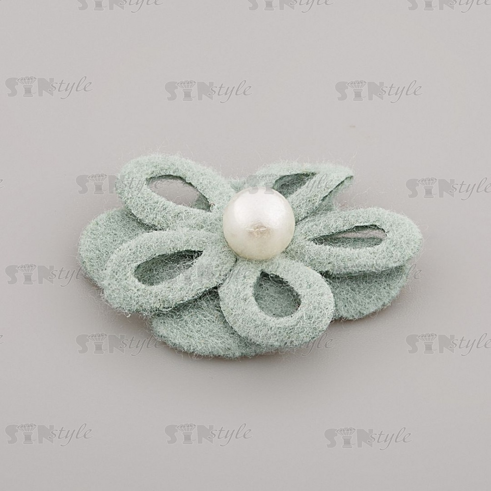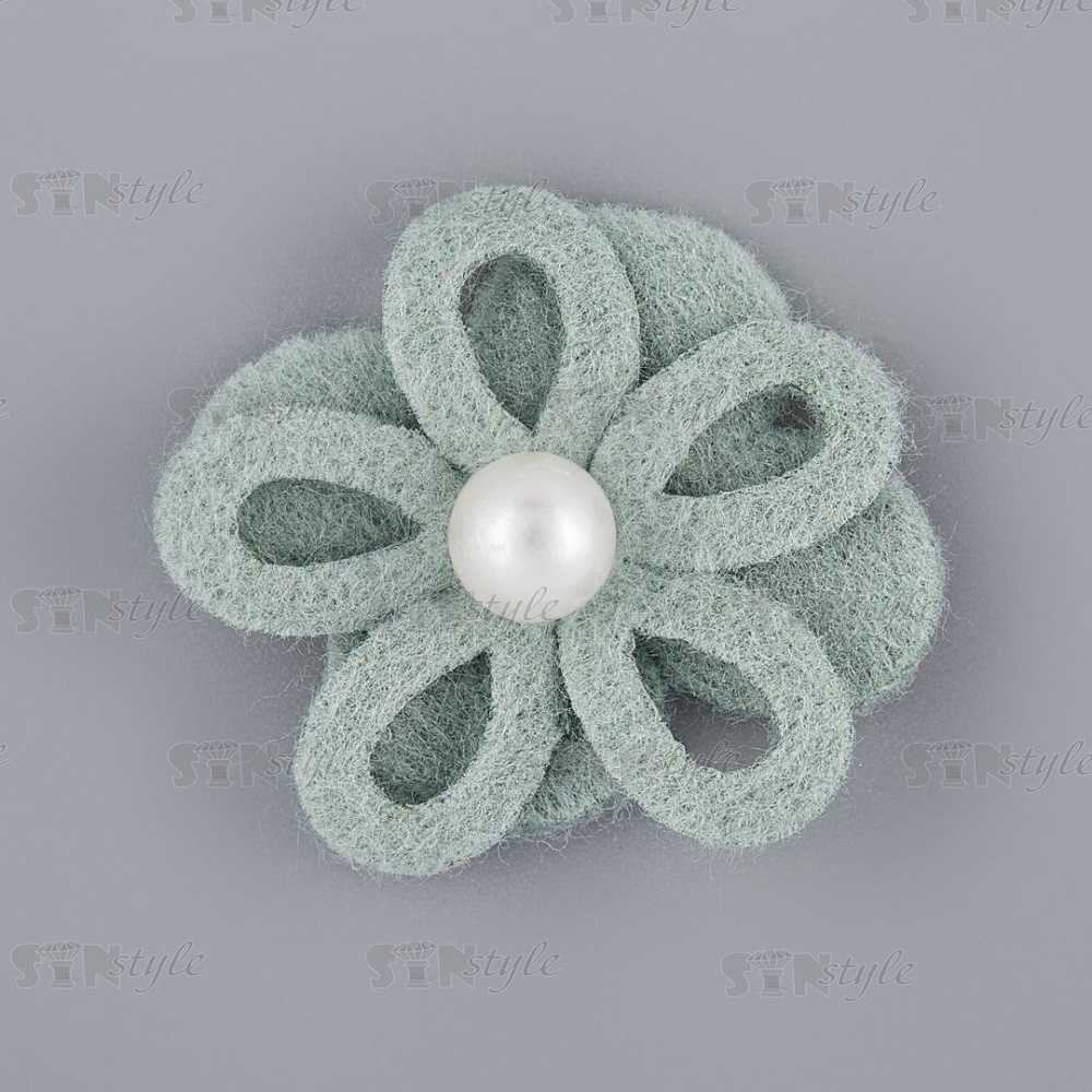 Оригинальный двухслойный цветок из фетра с полубусиной под жемчуг. Декоративные цветы имеют широкий диапазон применения: как отделочный элемент для платья, блузки, театрального костюма, шапочки, косынки берета, повязки, ободка для волос, резинок, заколок, а так же обуви из текстиля. Также цветок может быть использован в украшении букетов, подарочной упаковки, праздничных композиций и поможет решить любую задачу декорирования.