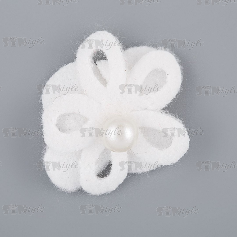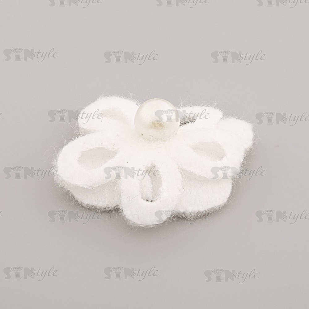 Оригинальный двухслойный цветок из фетра с полубусиной под жемчуг. Декоративные цветы имеют широкий диапазон применения: как отделочный элемент для платья, блузки, театрального костюма, шапочки, косынки берета, повязки, ободка для волос, резинок, заколок, а так же обуви из текстиля. Также цветок может быть использован в украшении букетов, подарочной упаковки, праздничных композиций и поможет решить любую задачу декорирования.