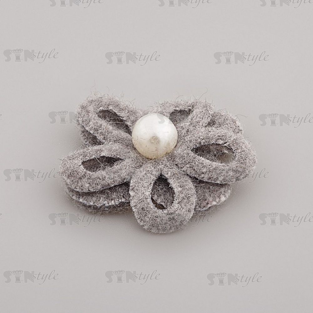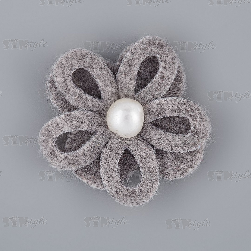 Оригинальный двухслойный цветок из фетра с полубусиной под жемчуг. Декоративные цветы имеют широкий диапазон применения: как отделочный элемент для платья, блузки, театрального костюма, шапочки, косынки берета, повязки, ободка для волос, резинок, заколок, а так же обуви из текстиля. Также цветок может быть использован в украшении букетов, подарочной упаковки, праздничных композиций и поможет решить любую задачу декорирования.