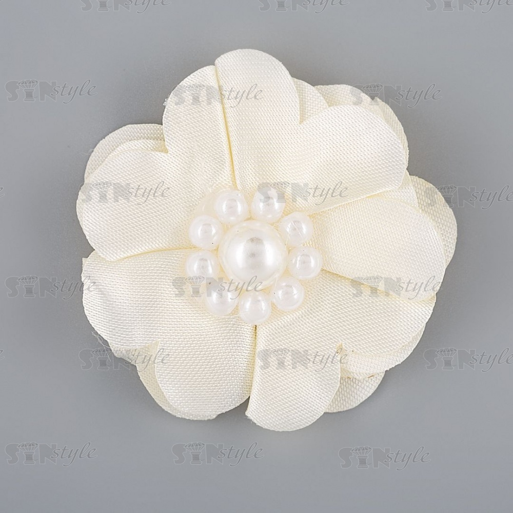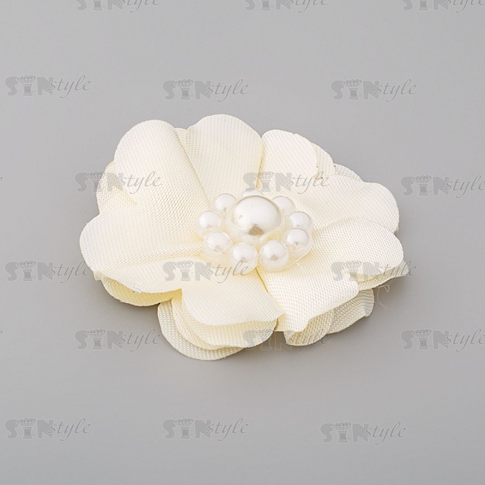 Цветочки декоративные с бусинами, цвет шампань, диаметр 45 мм,