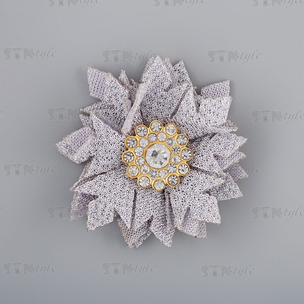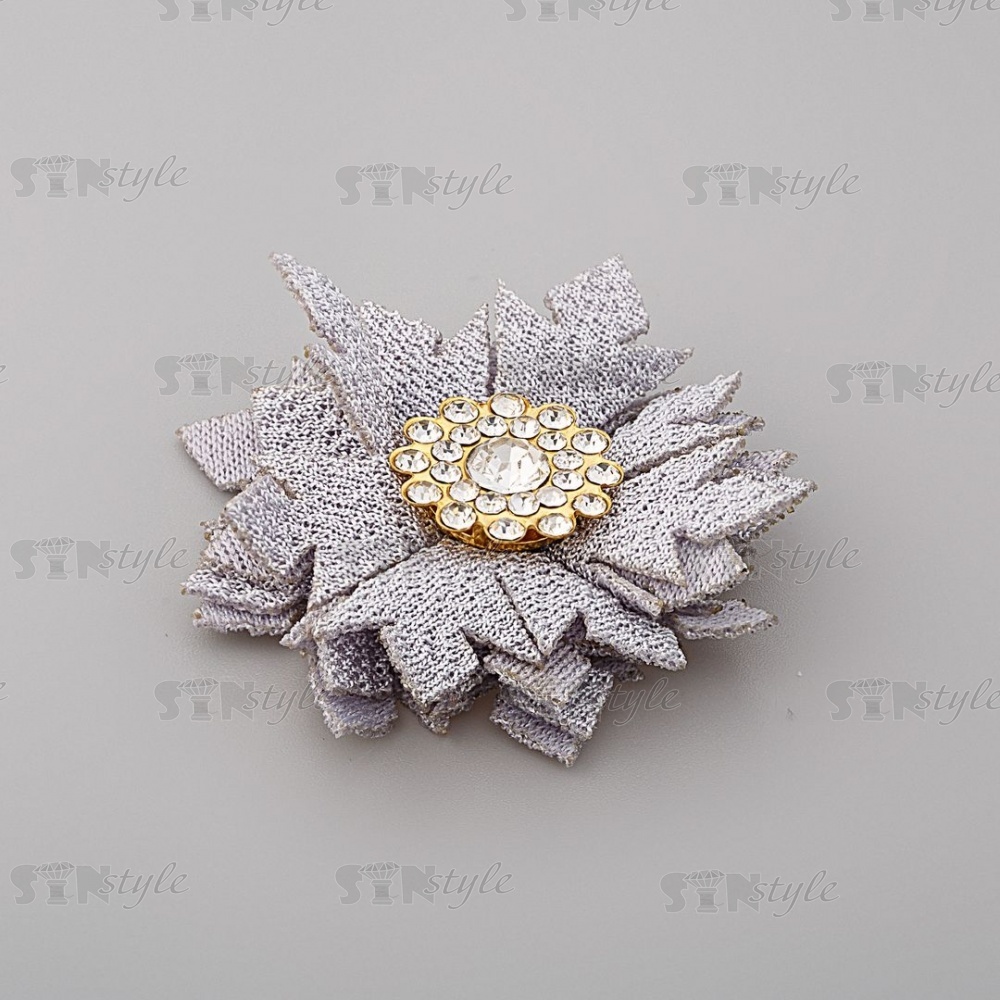 Цветочки декоративные тканевые со стразами, цвет серый, диаметр 40 мм,