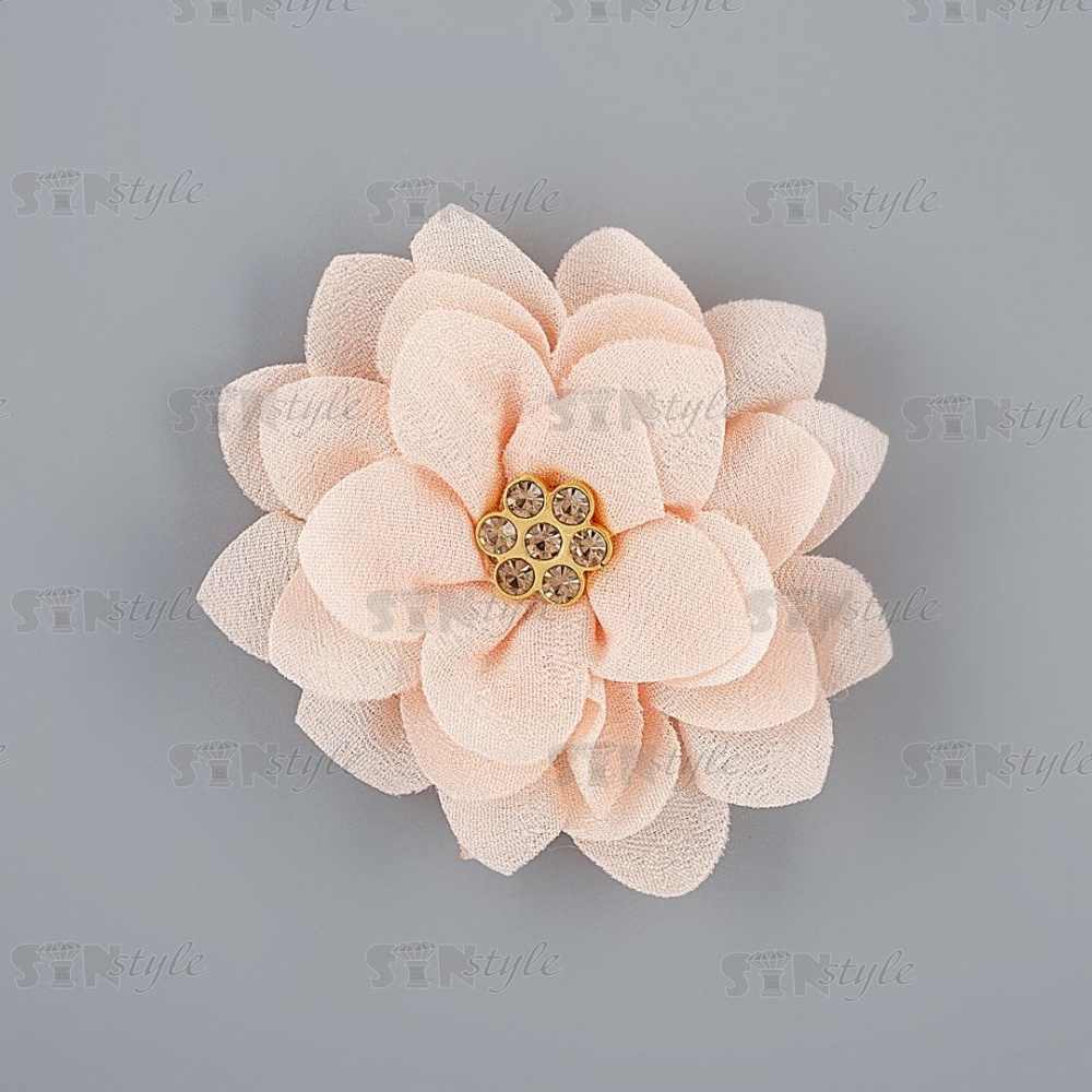 Цветочки декоративные со стразами, цвет персик, диаметр 60 мм,