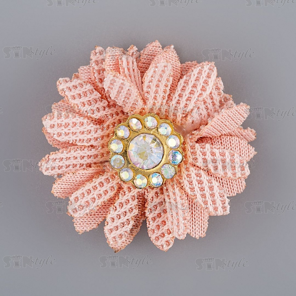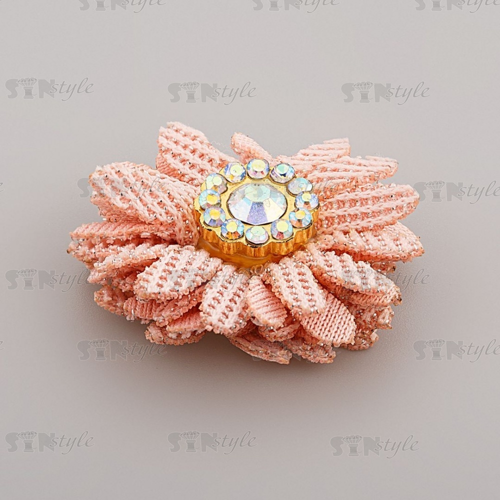 Тканевый оригинальный цветок с заостренными лепестками и сердцевинкой из страз. Тканевые цветы имеют широкий диапазон применения: как отделочный элемент для платья, блузки, театрального костюма, шапочки, косынки берета, повязки, ободка для волос, резинок, заколок, а так же обуви из текстиля. Также цветок может быть использован в украшении букетов, подарочной упаковки, праздничных композиций и поможет решить любую задачу декорирования.