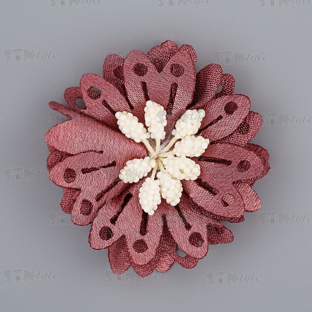 Тканевые цветы имеют широкий диапазон применения: как отделочный элемент для платья, блузки, театрального костюма, шапочки, косынки берета, повязки, ободка для волос, резинок, заколок, а так же обуви из текстиля. Также цветок может быть использован в украшении букетов, подарочной упаковки, праздничных композиций и поможет решить любую задачу декорирования.