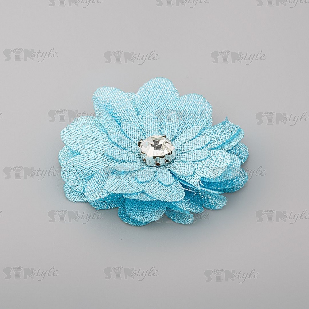 Тканевый оригинальный цветок со стразой. Тканевые цветы имеют широкий диапазон применения: как отделочный элемент для платья, блузки, театрального костюма, шапочки, косынки берета, повязки, ободка для волос, резинок, заколок, а так же обуви из текстиля. Также цветок может быть использован в украшении букетов, подарочной упаковки, праздничных композиций и поможет решить любую задачу декорирования.