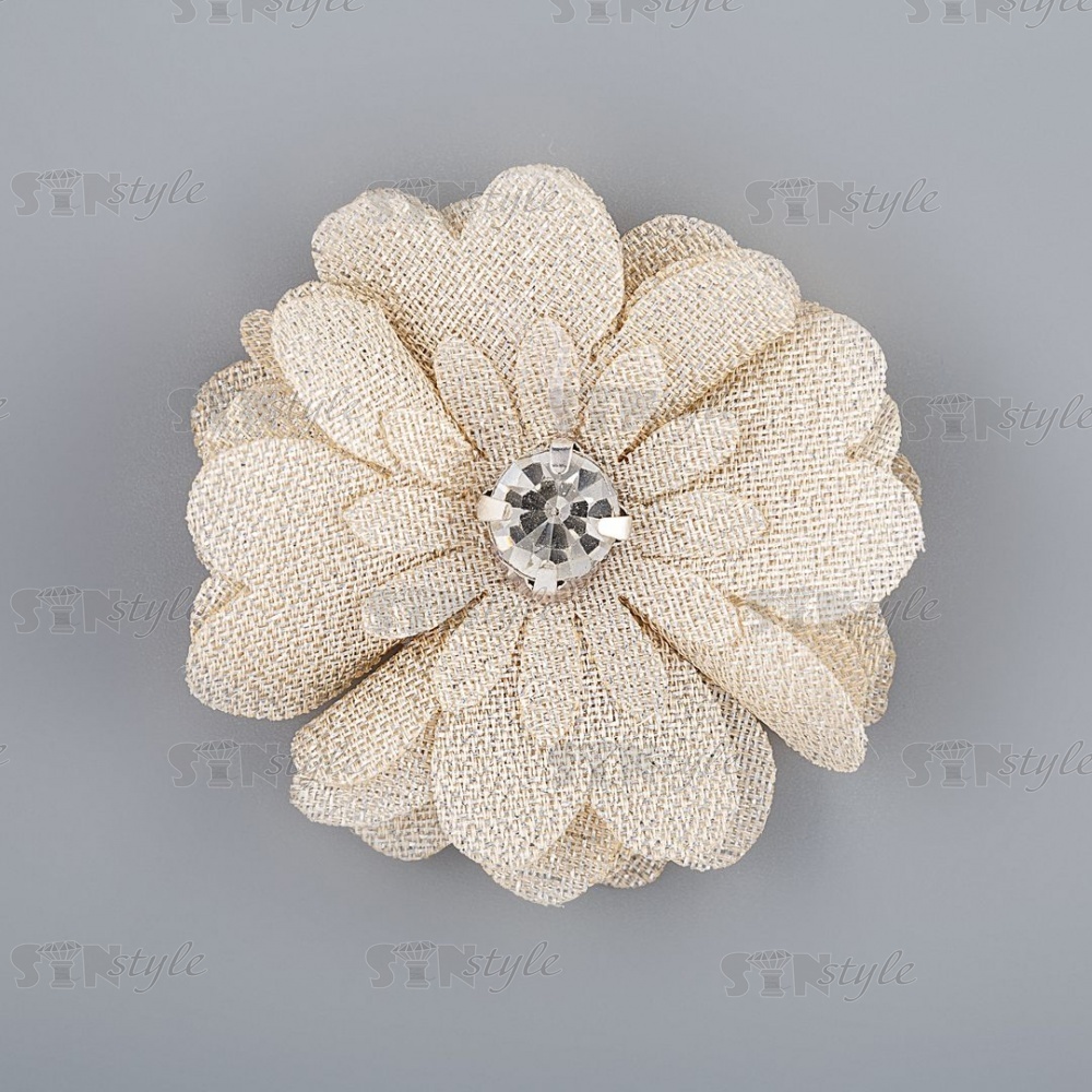 Тканевый оригинальный цветок со стразой. Тканевые цветы имеют широкий диапазон применения: как отделочный элемент для платья, блузки, театрального костюма, шапочки, косынки берета, повязки, ободка для волос, резинок, заколок, а так же обуви из текстиля. Также цветок может быть использован в украшении букетов, подарочной упаковки, праздничных композиций и поможет решить любую задачу декорирования.