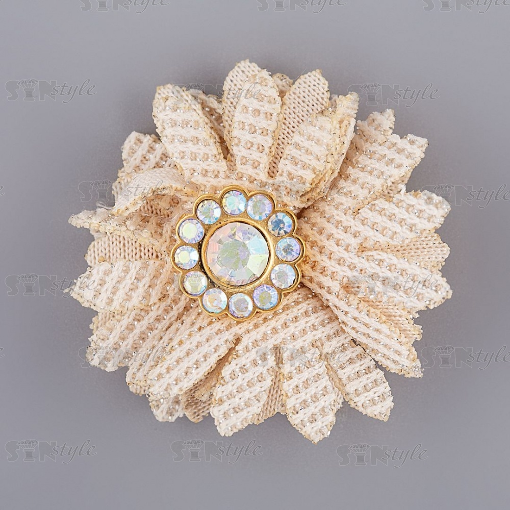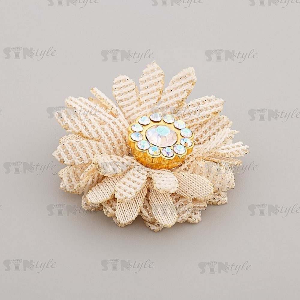 Тканевый оригинальный цветок с заостренными лепестками и сердцевинкой из страз. Тканевые цветы имеют широкий диапазон применения: как отделочный элемент для платья, блузки, театрального костюма, шапочки, косынки берета, повязки, ободка для волос, резинок, заколок, а так же обуви из текстиля. Также цветок может быть использован в украшении букетов, подарочной упаковки, праздничных композиций и поможет решить любую задачу декорирования.