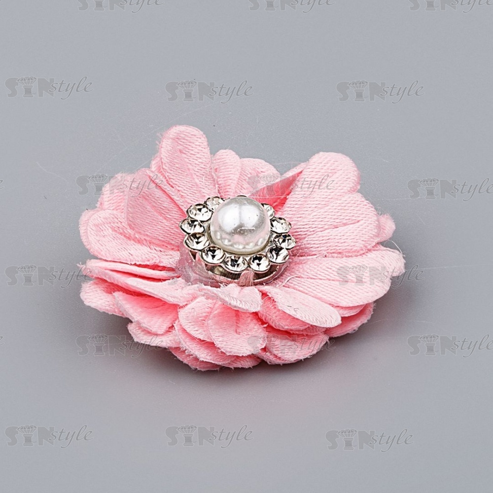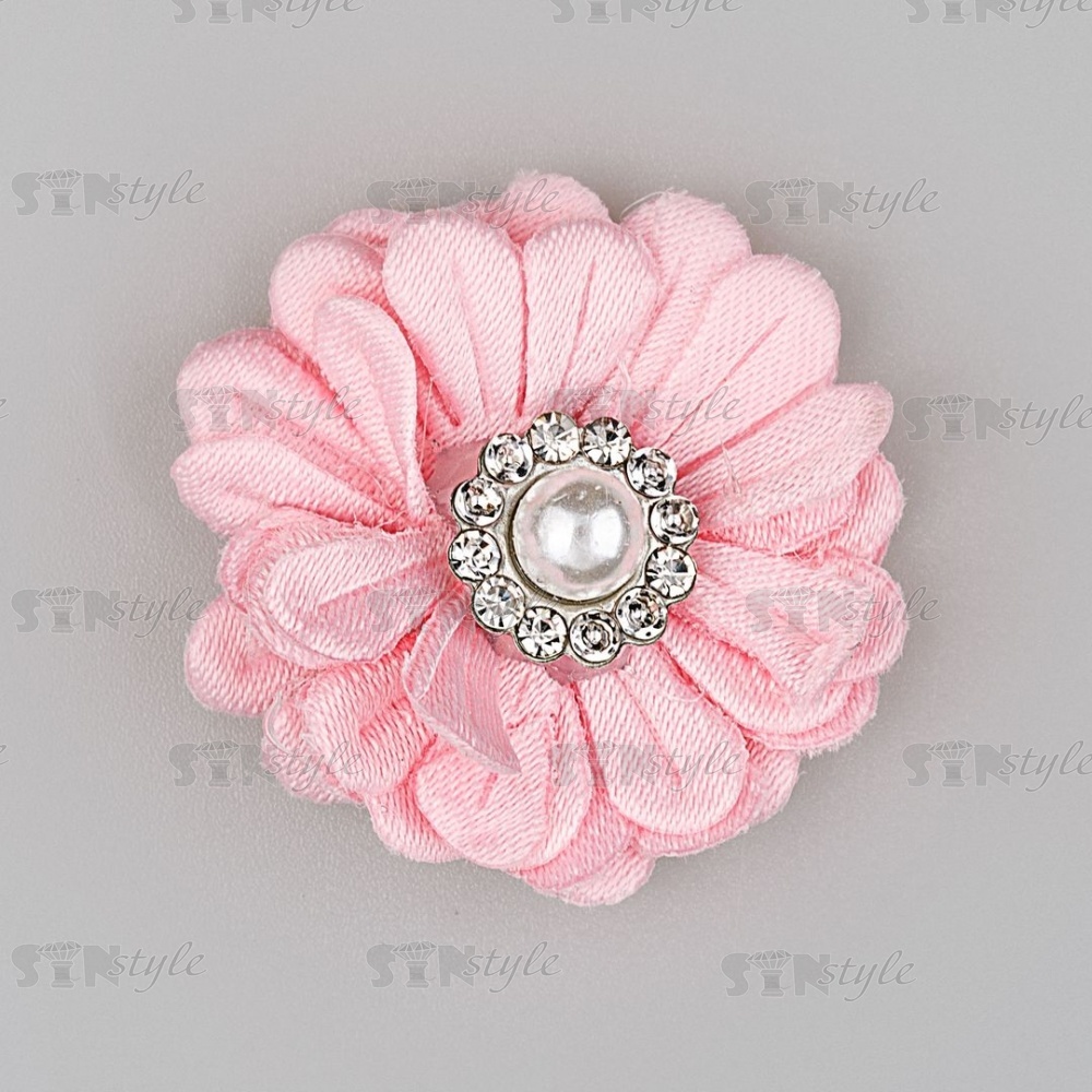 Цветочки декоративные со стразами и бусиной, цвет розовый, диаметр 30 мм,