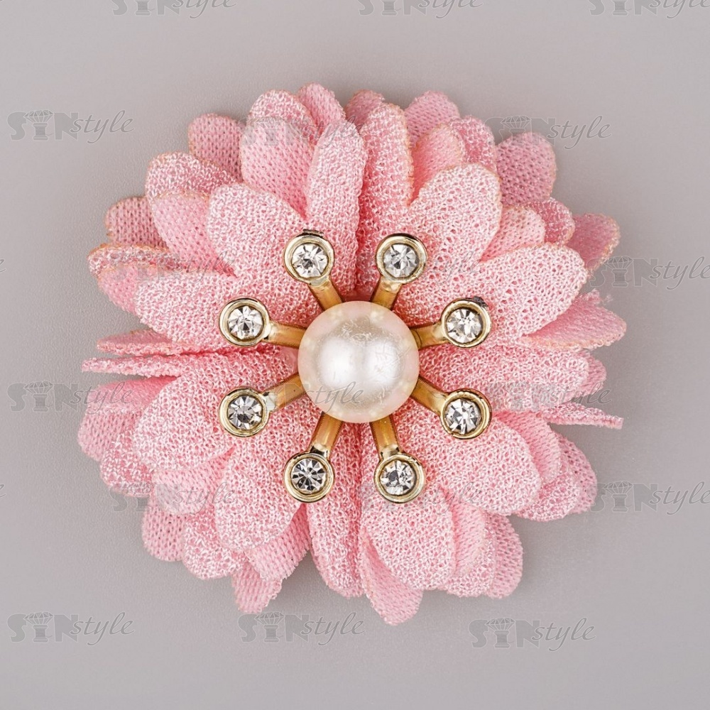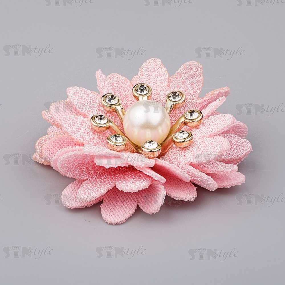 Цветочки декоративные со стразами и бусиной, цвет розовый, диаметр 45 мм