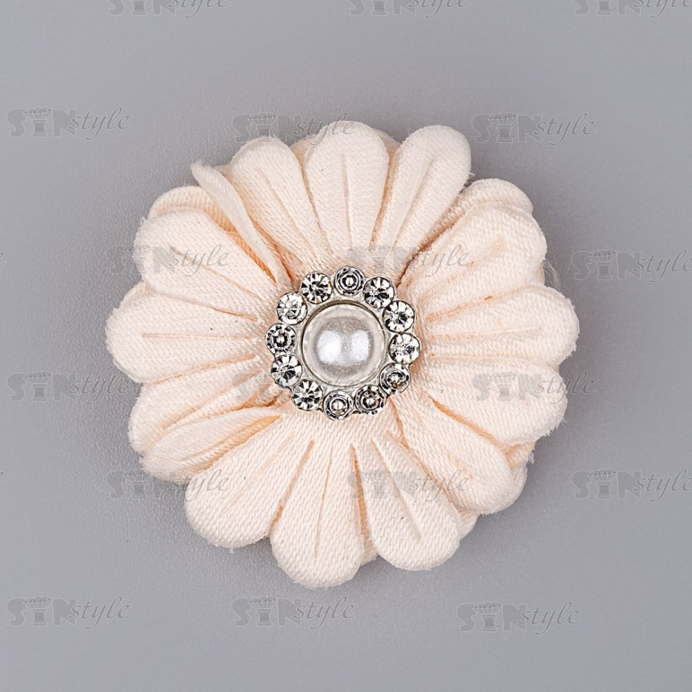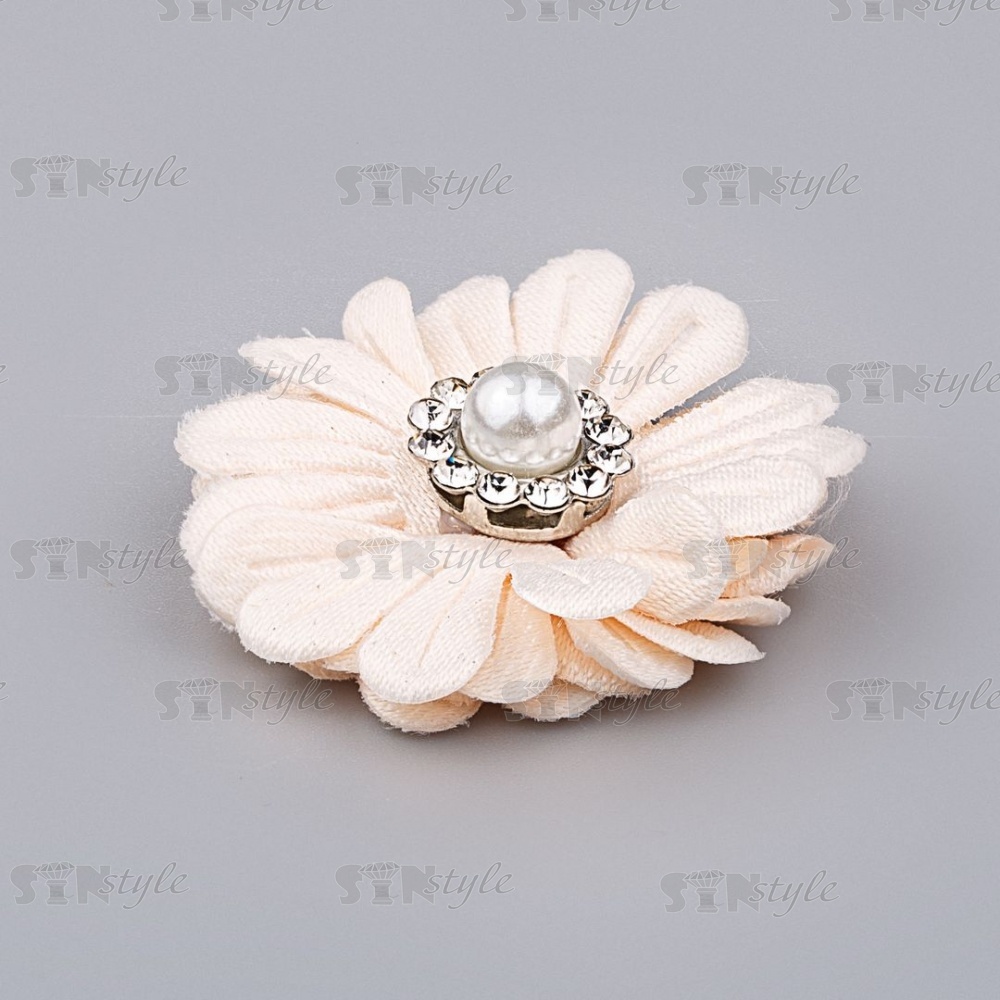 Цветочки декоративные со стразами и бусиной, цвет шампань, диаметр 30 мм,