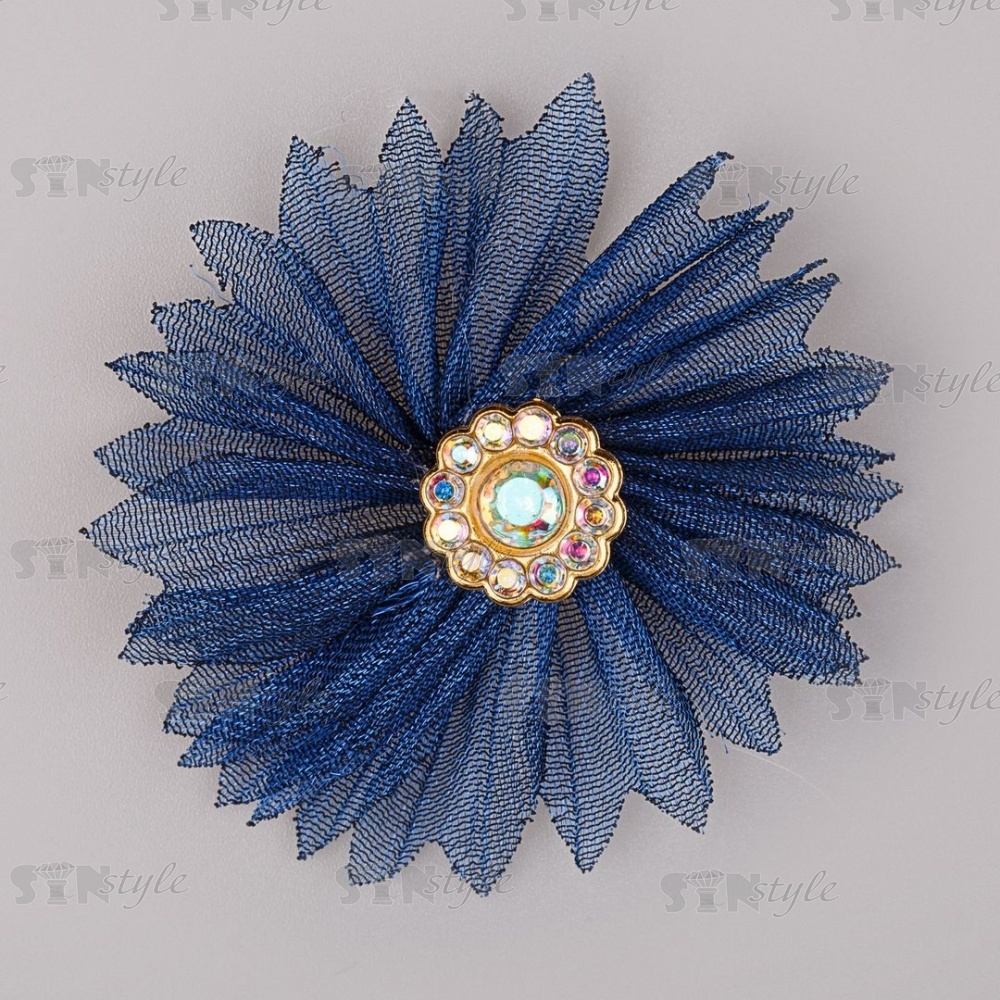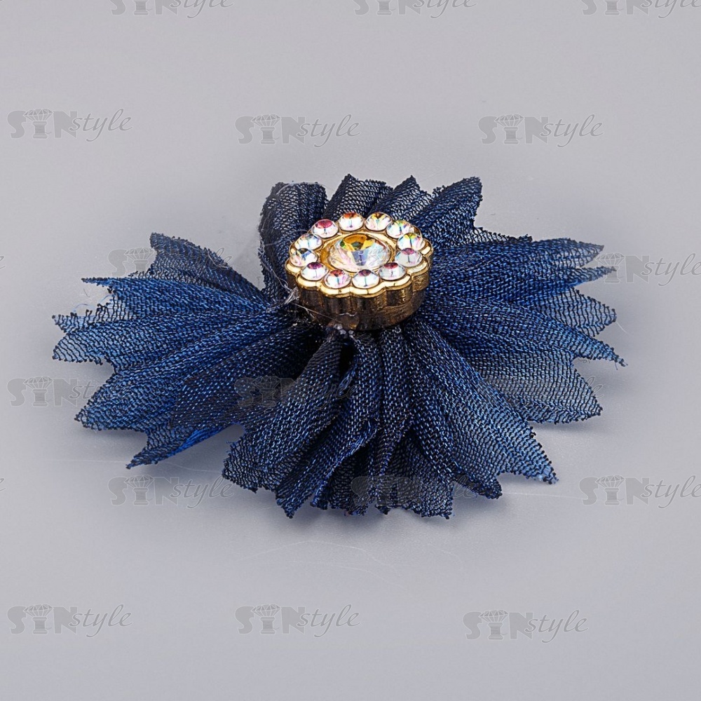 Цветочки декоративные из капрона со стразами, цвет темно-синий, диаметр 45 мм,