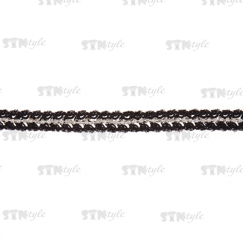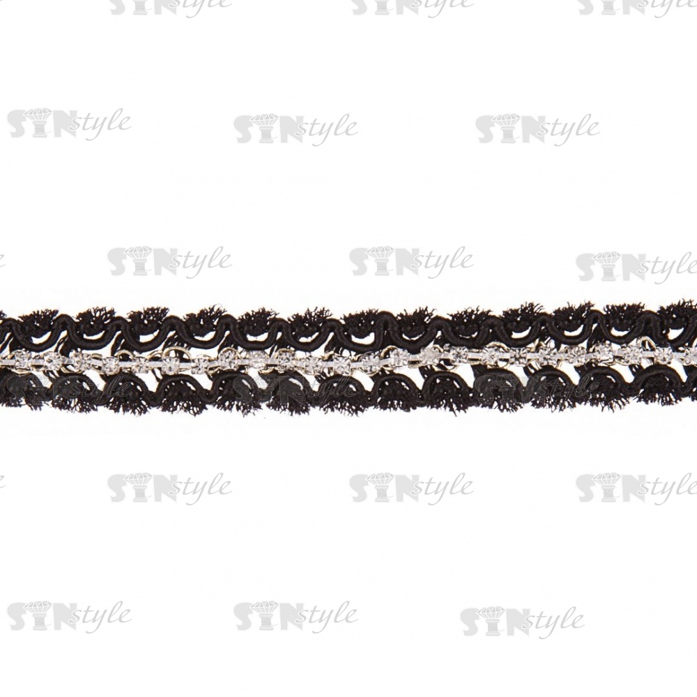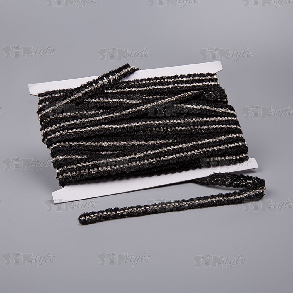 Тесьма отделочная со стразами, ширина 12 мм, цвет черный, стразы белые, намотка 15 ярдов