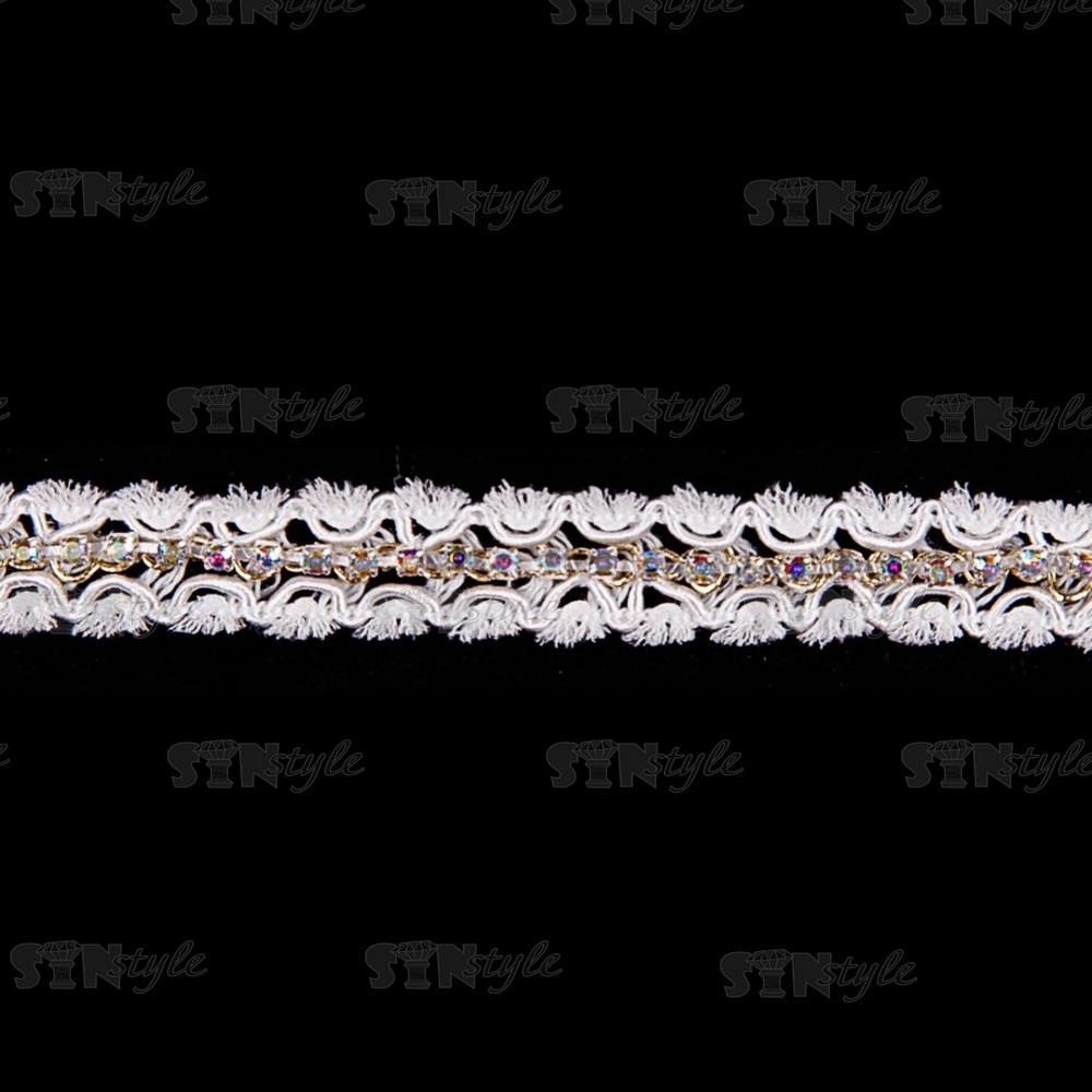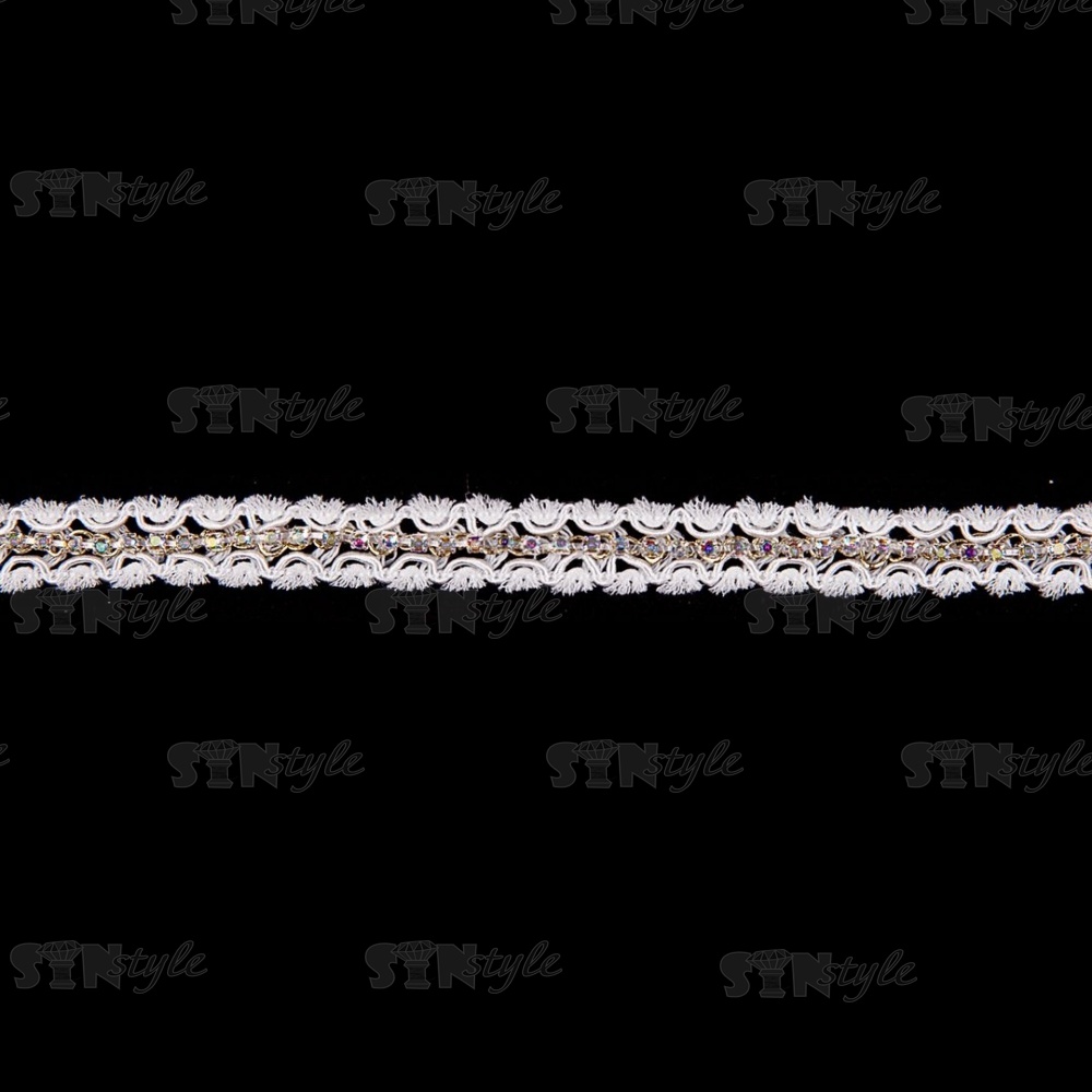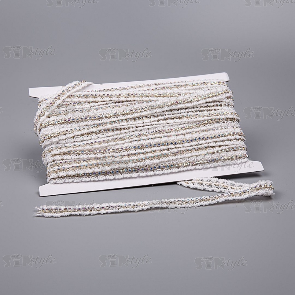Тесьма отделочная со стразами, ширина 12 мм, цвет белый, стразы белые, намотка 15 ярдов