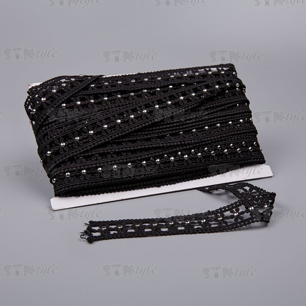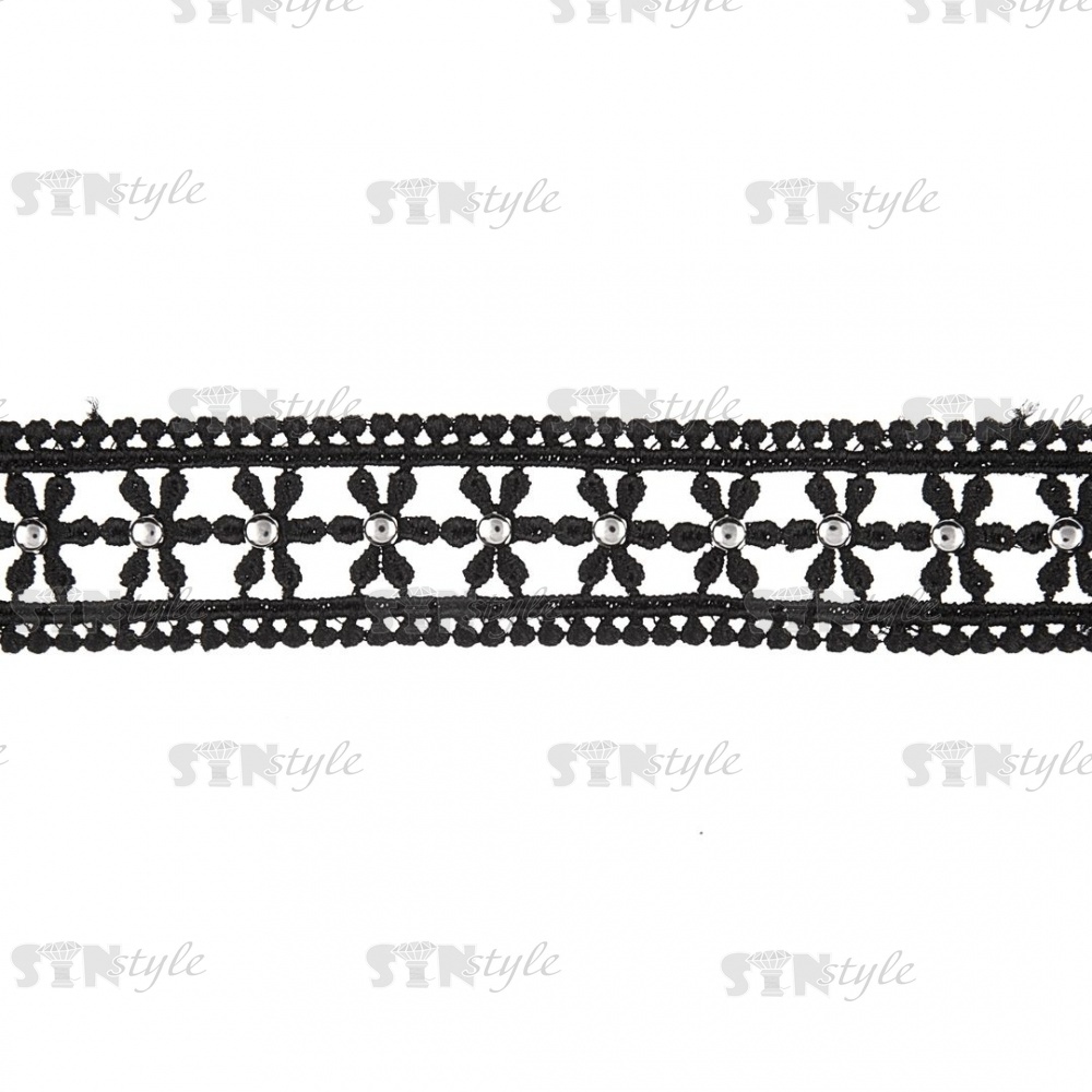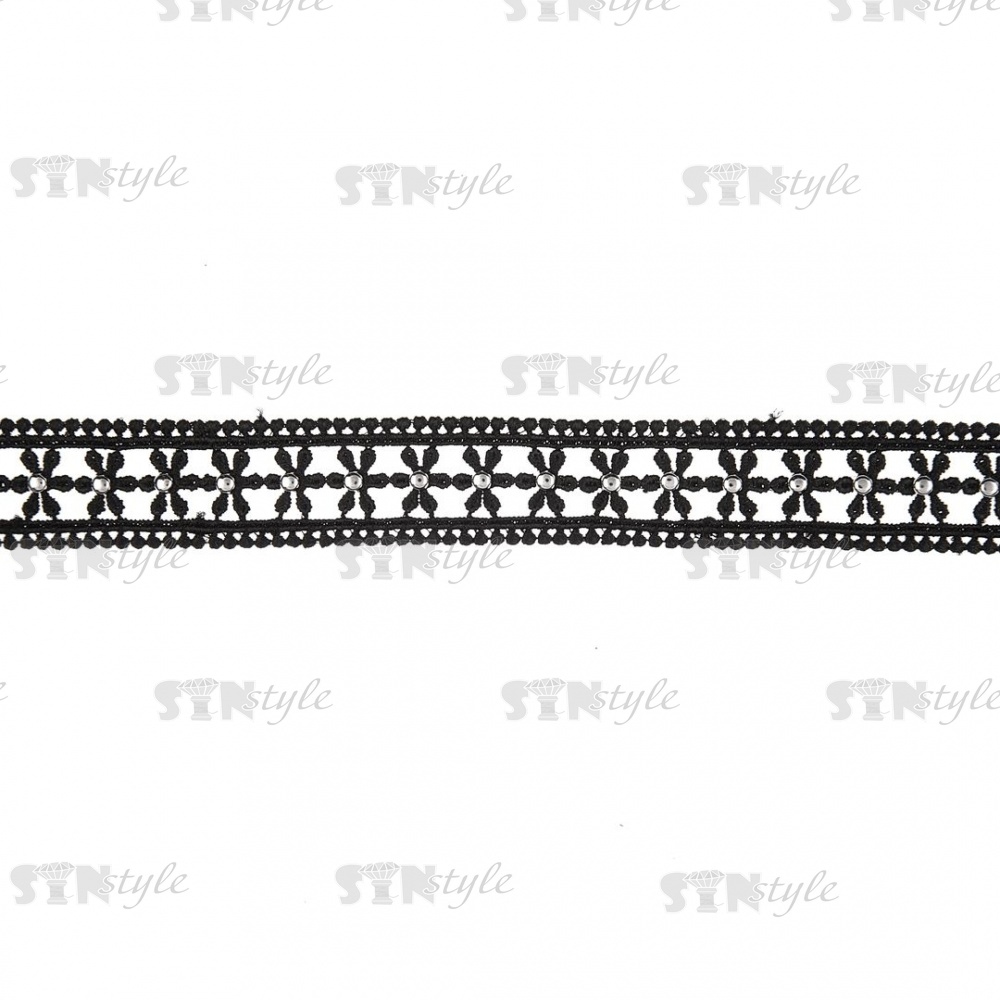 Кружево ажурное с клепками, ширина 25 мм, цвет черный, намотка 15 ярдов