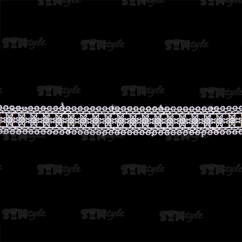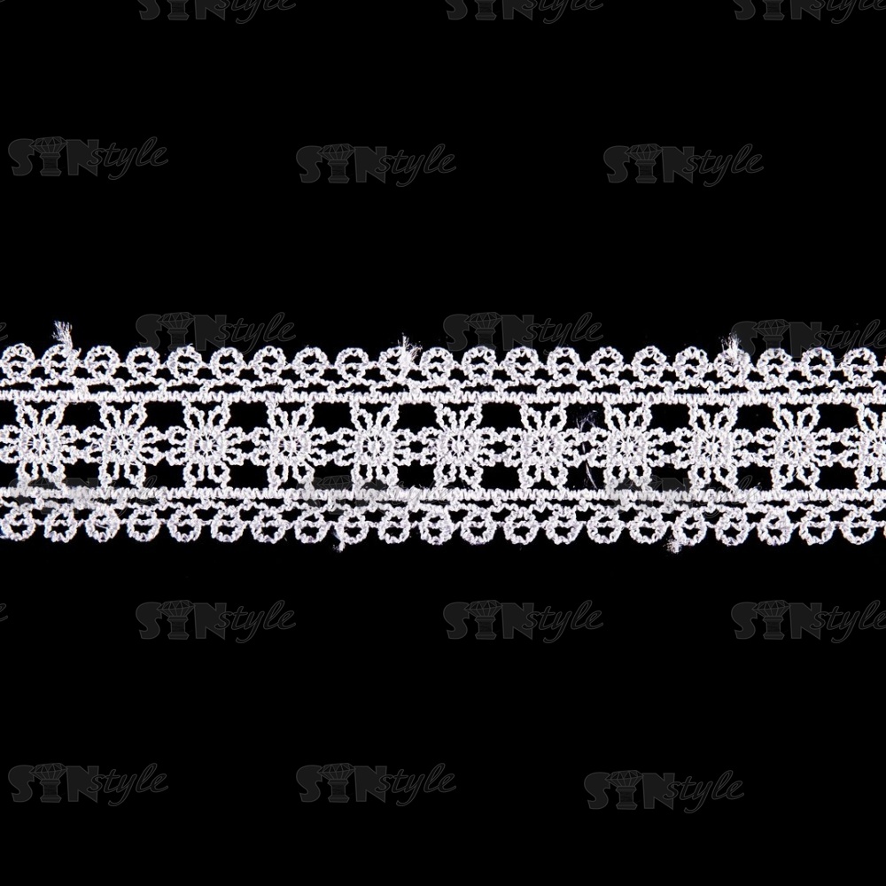 Кружево ажурное с нежным цветочным узором, ширина 30 мм, цвет белый, намотка 10 ярдов