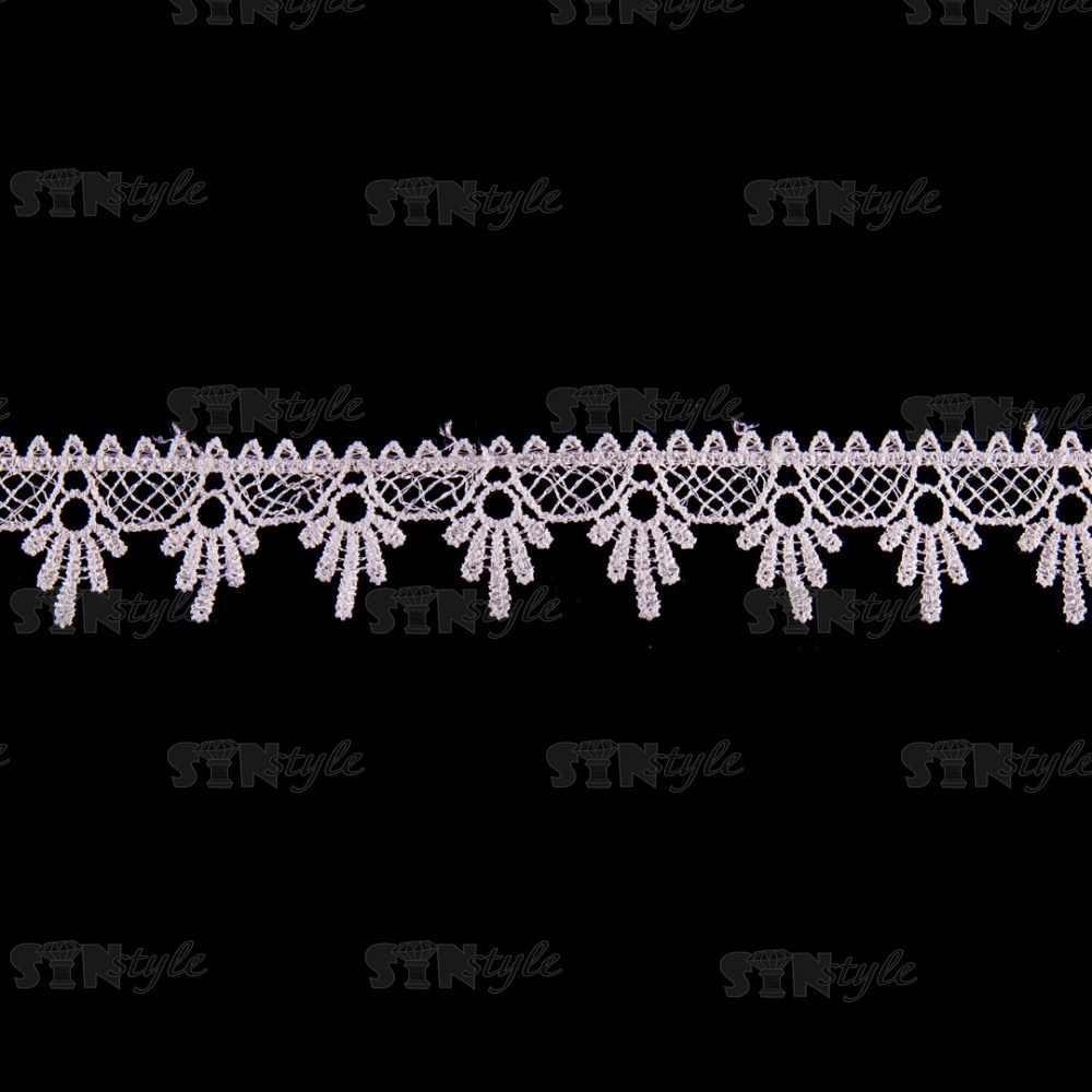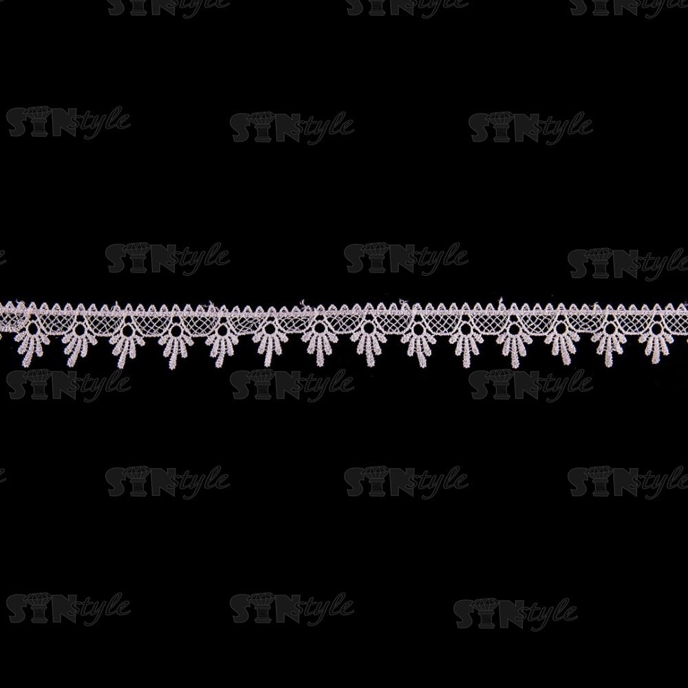 Кружево ажурное, нежная воздушная сеточка с фестонами по контуру, ширина 35 мм, цвет белый, намотка 15 ярдов