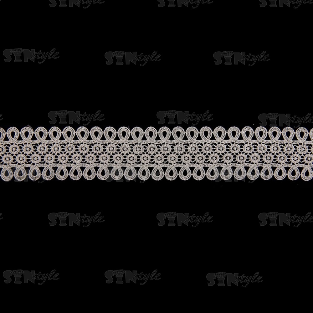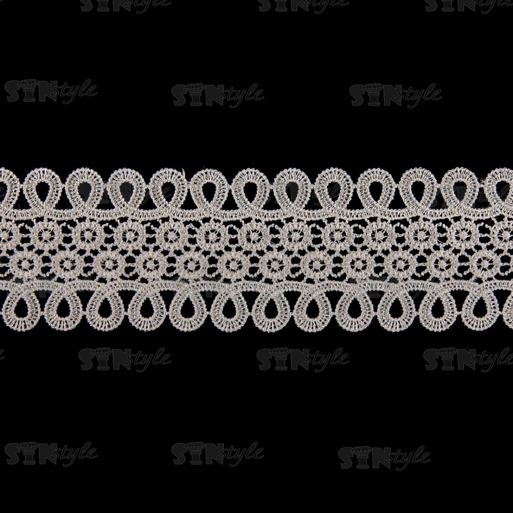 Кружево ажурное, нежная цветочная гирлянда с резным краем в виде петелек, ширина 60 мм, цвет бежевый, намотка 10 ярдов