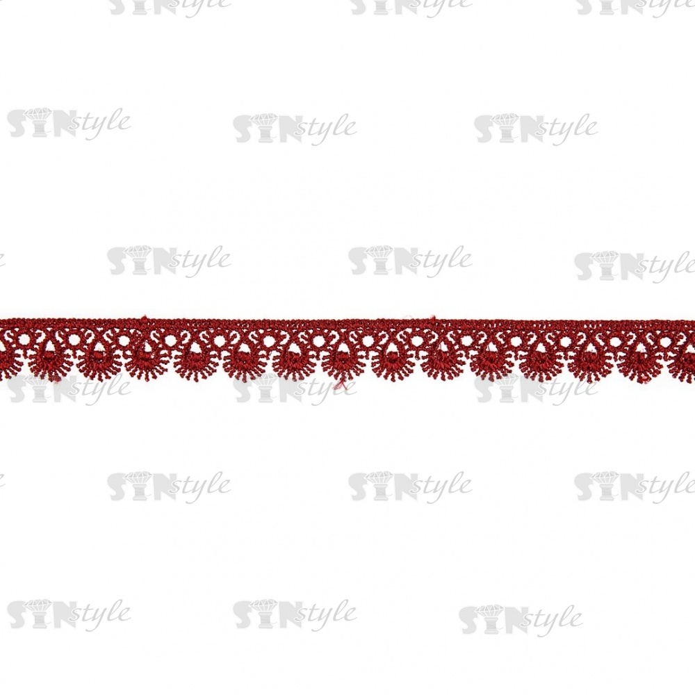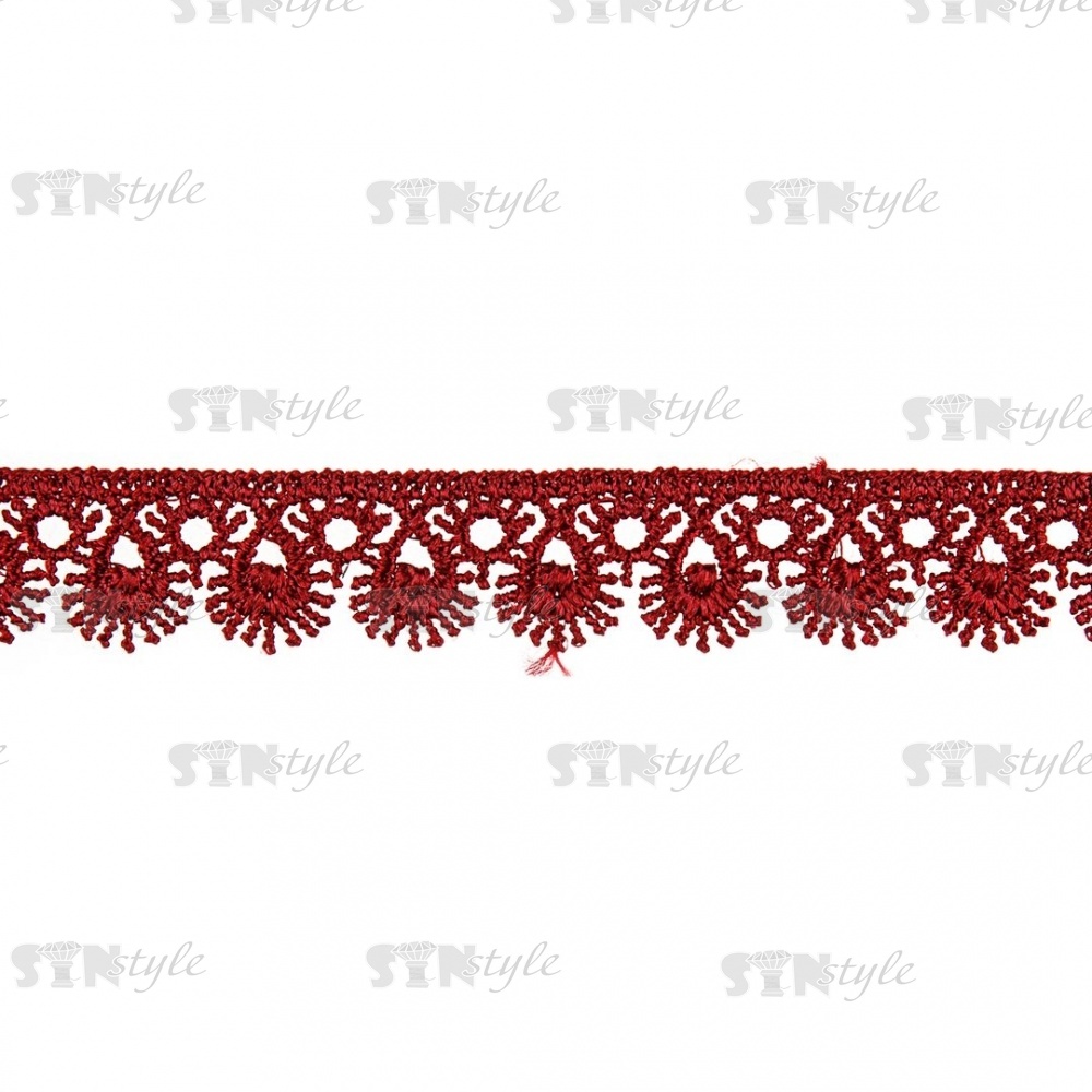 Кружево ажурное, тонкая изящная нежная гирлянда с причудливым узором и резными краями, ширина 15 мм, цвет бордовый, намотка 10 ярдов