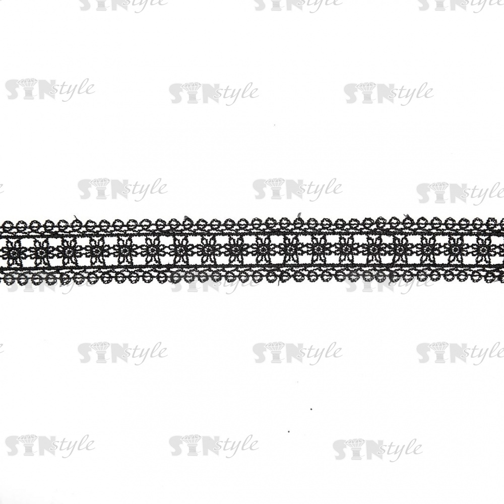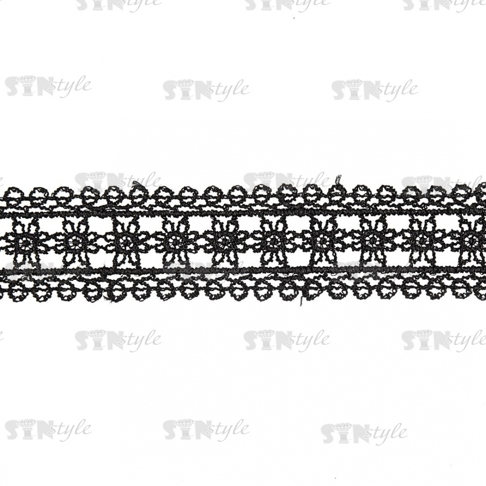 Кружево ажурное с нежным цветочным узором, ширина 30 мм, цвет черный, намотка 10 ярдов