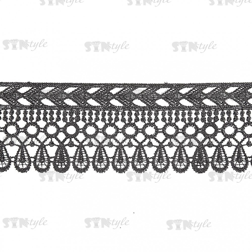 Нежное ажурное кружево с причудливым узором, ширина 66 мм, цвет черный, намотка 10 ярдов