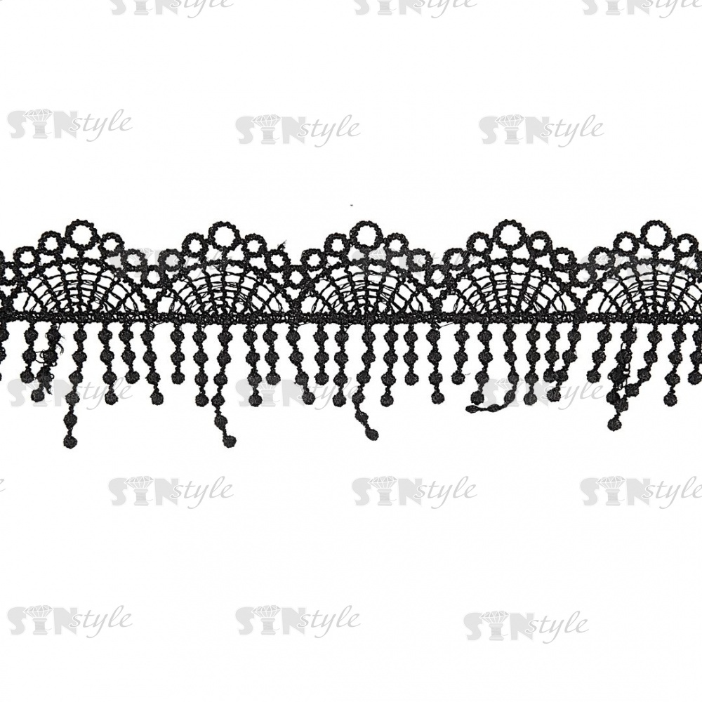 Кружево ажурное, нежная изящная гирлянда с тонкой бахромой по нижнему краю, ширина 45 мм, цвет черный, намотка 10 ярдов