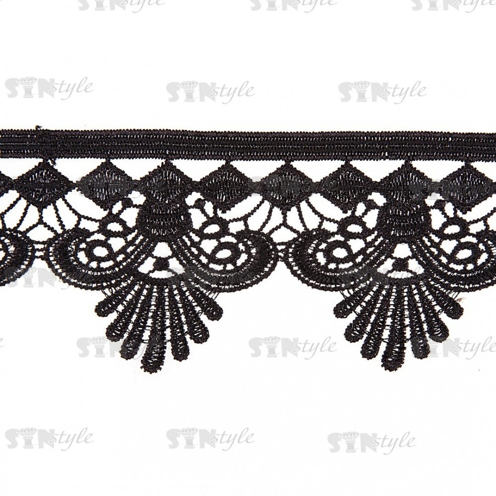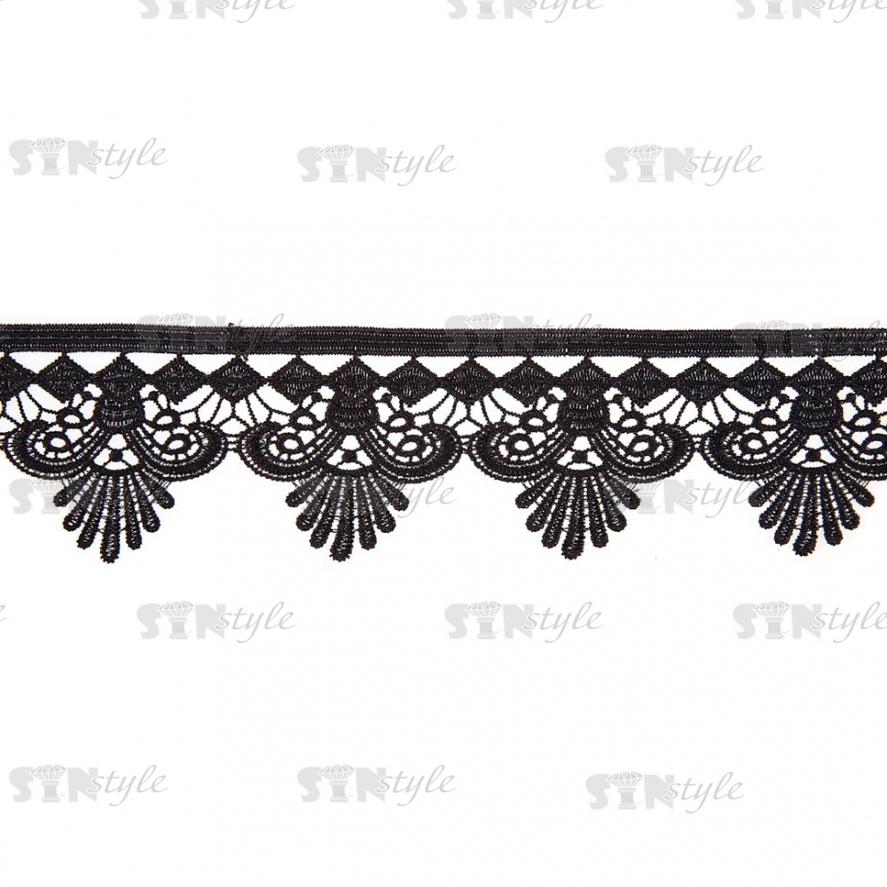 Нежное ажурное кружево с причудливым узором, ширина 70 мм, цвет черный, намотка 10 ярдов