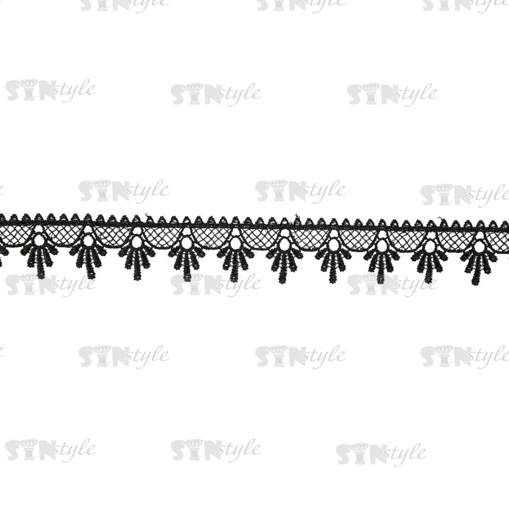 Кружево ажурное, нежная воздушная сеточка с фестонами по контуру, ширина 35 мм, цвет черный, намотка 15 ярдов