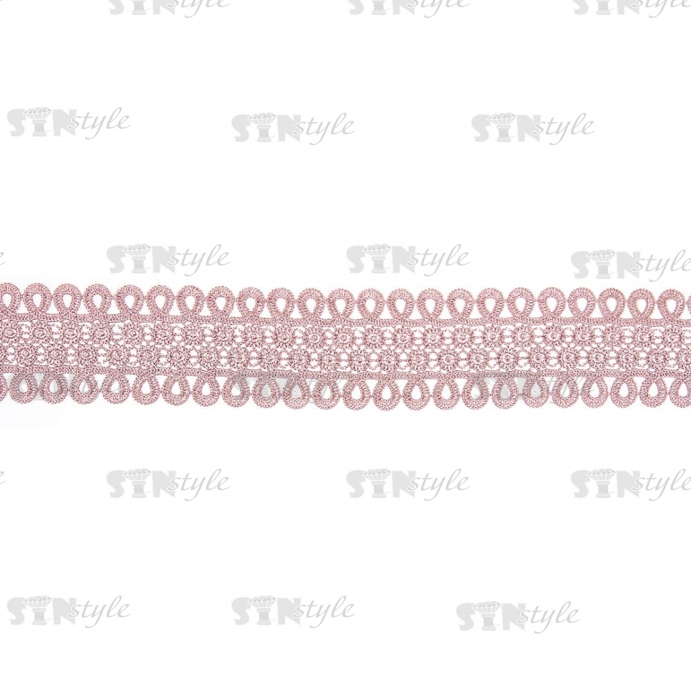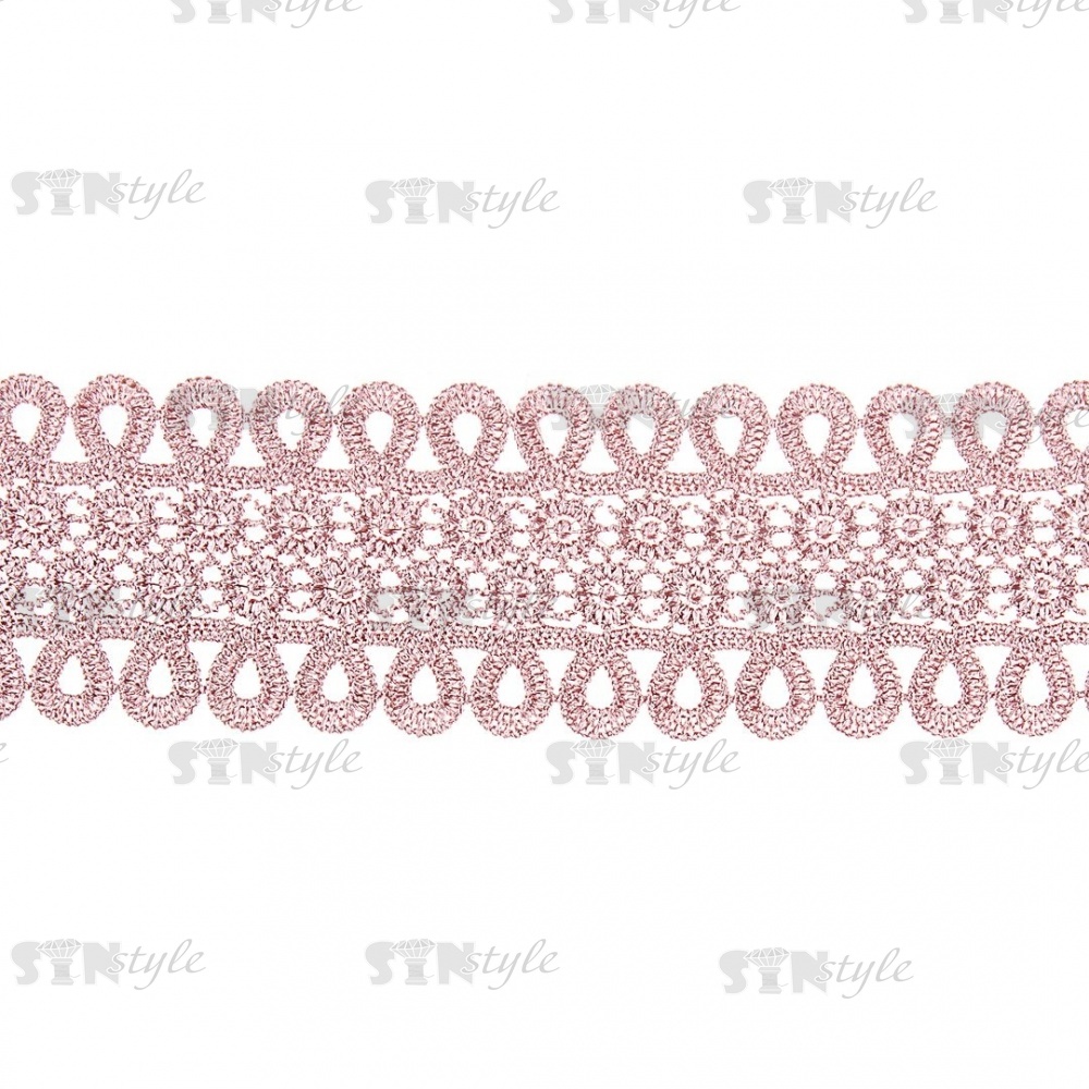 Кружево ажурное, нежная цветочная гирлянда с резным краем в виде петелек, ширина 60 мм, цвет грязно-розовый, намотка 10 ярдов