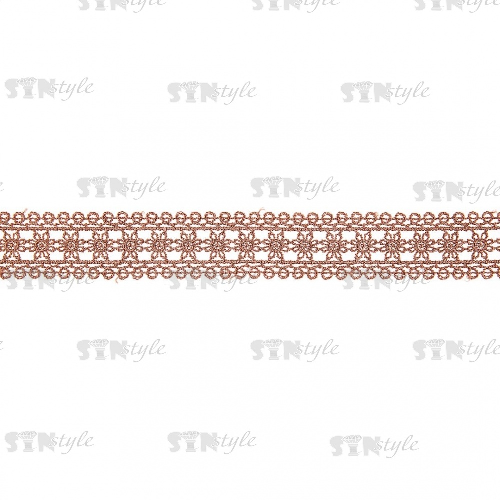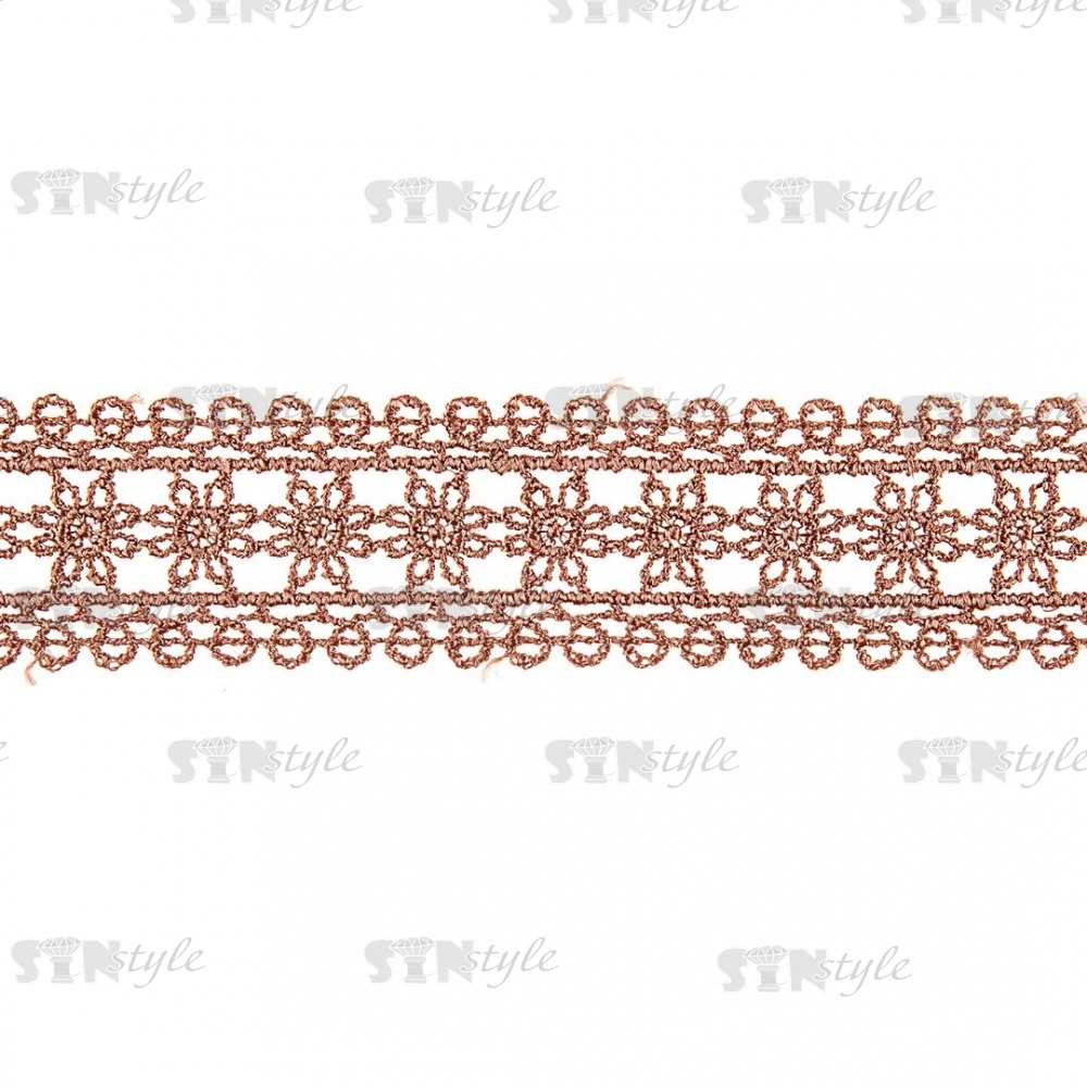 Кружево ажурное с нежным цветочным узором, ширина 30 мм, цвет каппучино, намотка 10 ярдов