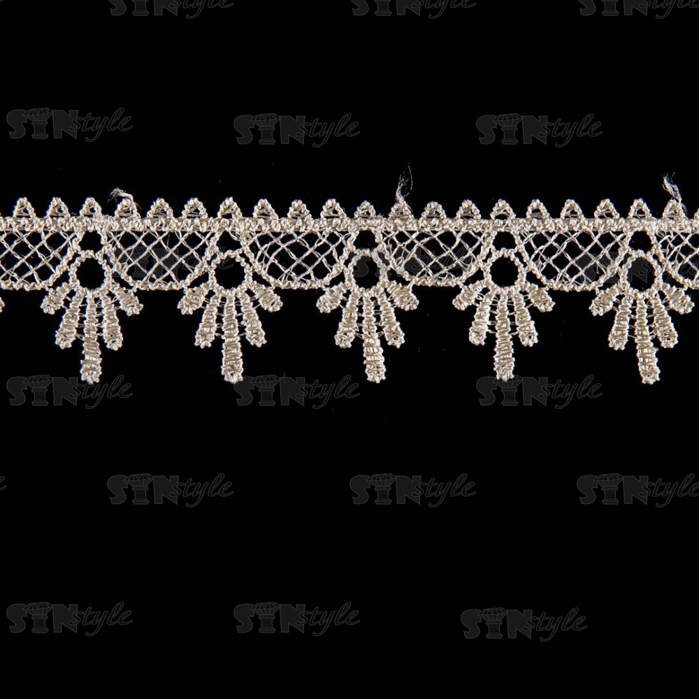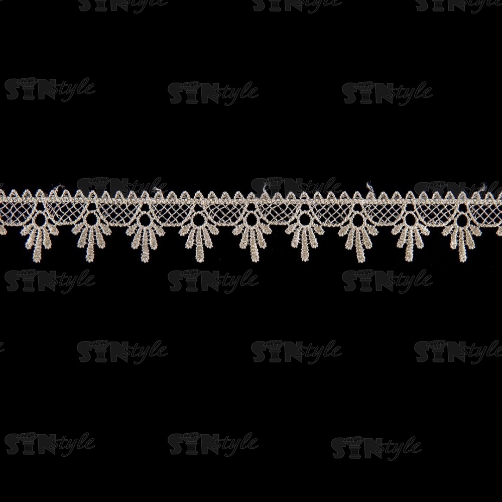 Кружево ажурное, нежная воздушная сеточка с фестонами по контуру, ширина 35 мм, цвет шампань, намотка 15 ярдов
