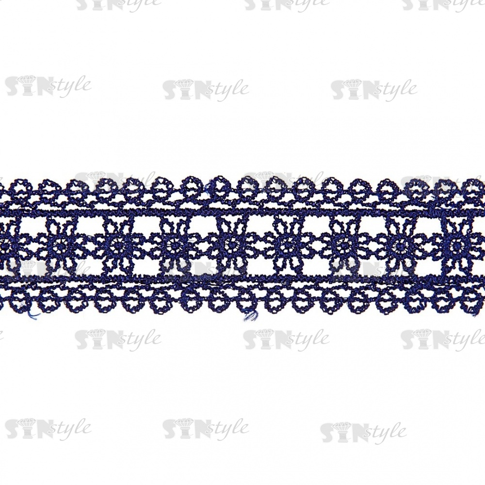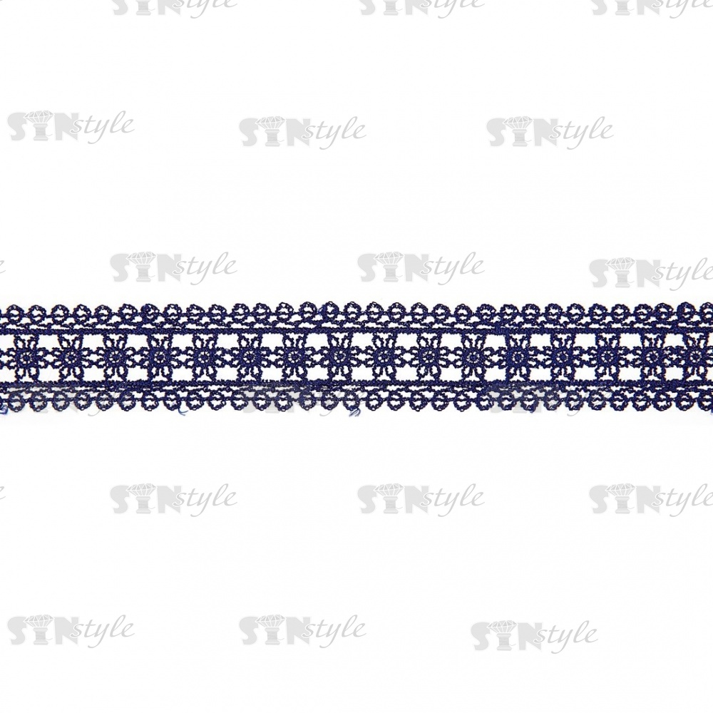 Кружево ажурное, нежная цветочная гирлянда с резным краем, ширина 30 мм, цвет темно-синий, намотка 10 ярдов