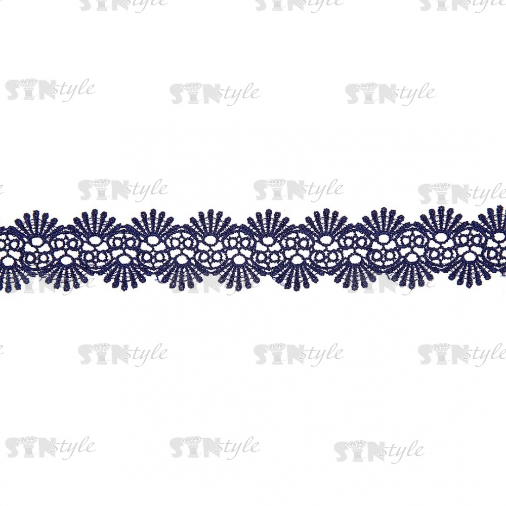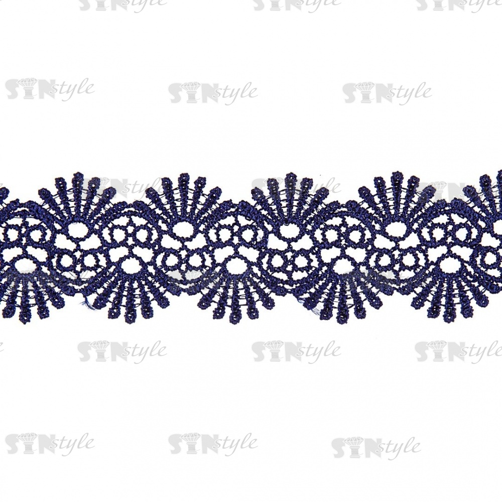Кружево ажурное, тонкая изящная гирлянда с причудливым узором и резными краями, ширина 40 мм, цвет темно-синий, намотка 10 ярдов