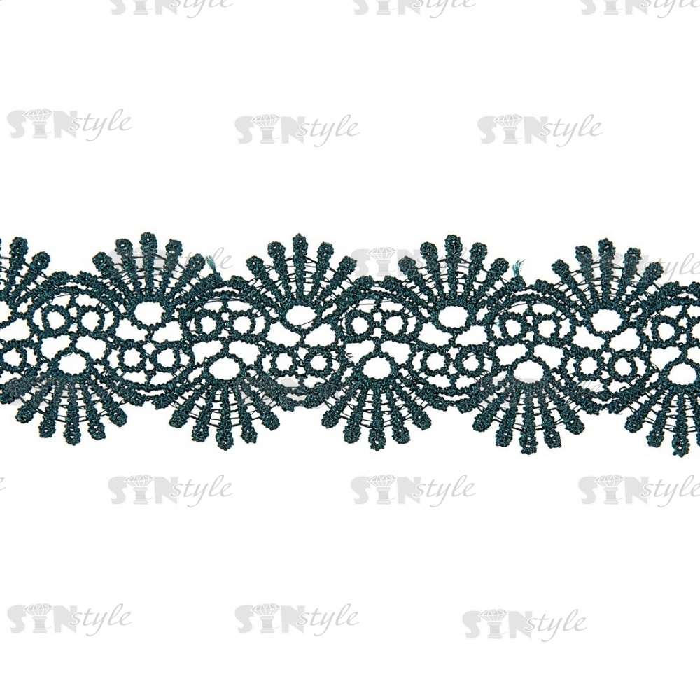 Кружево ажурное, нежная воздушная гирлянда с резными краями, ширина 40 мм, цвет темно-зеленый, намотка 10 ярдов