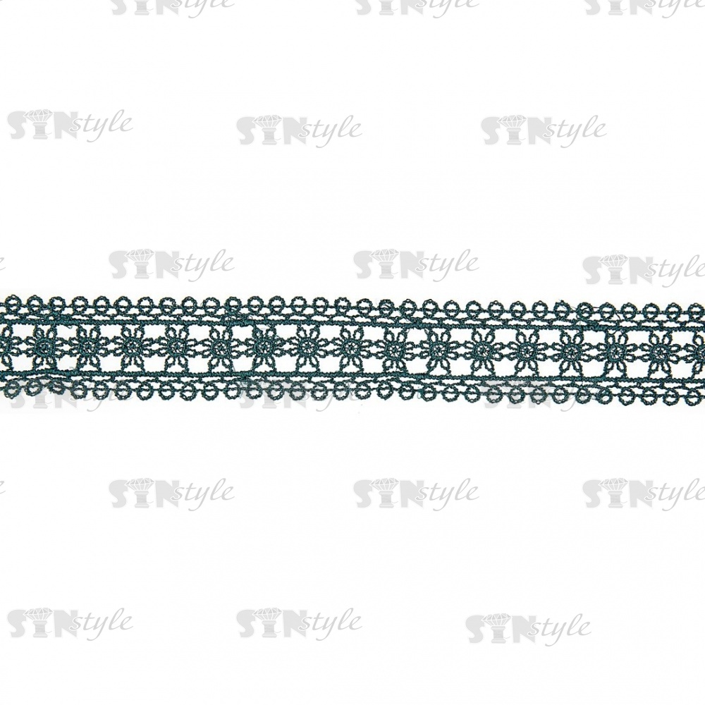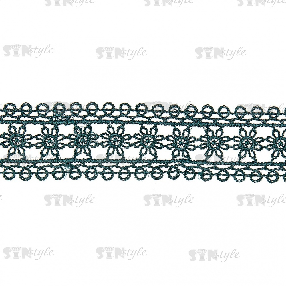 Кружево ажурное с нежным цветочным узором, ширина 30 мм, цвет темно-зеленый, намотка 10 ярдов